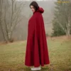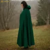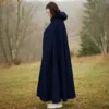 This Medieval Wool Hooded Cloak is a masterwork of warmth, authenticity, and timeless grace. Crafted from a heavy wool blend (70% wool, 30% other fibres) weighing approximately 350 gsm, this cloak offers the ideal balance of insulation, drape, and durability.