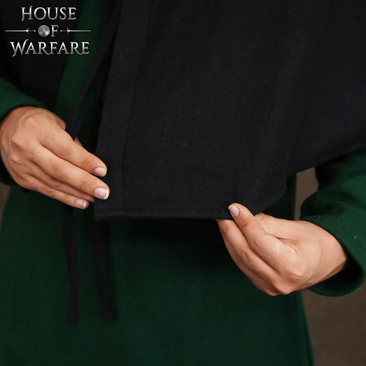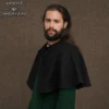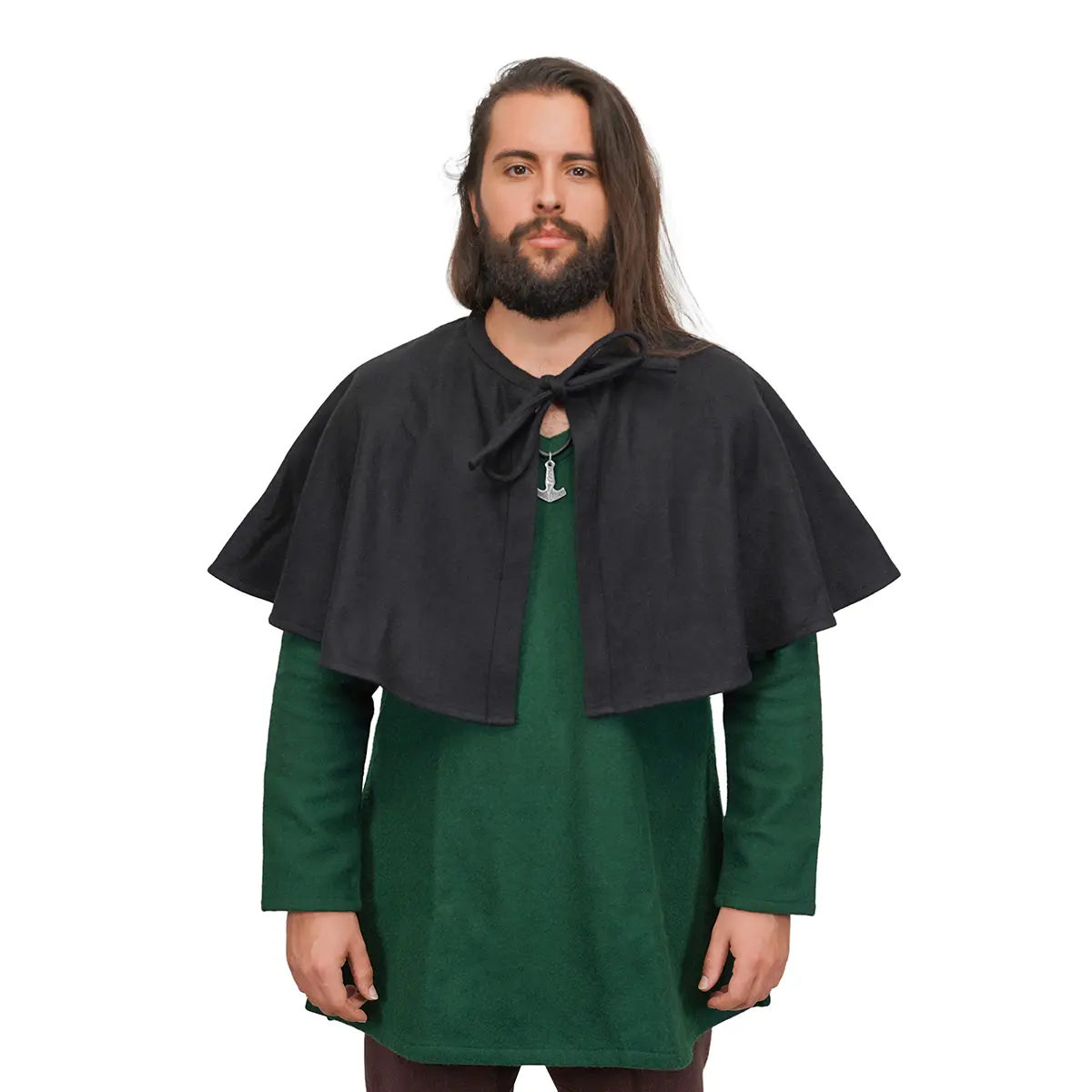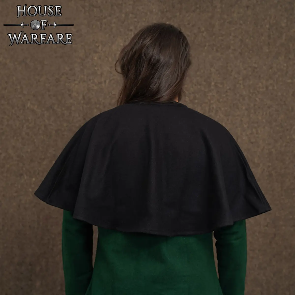 Crafted from a blend of 70% wool and 30% natural fibers, this short cape (also known as a mantle or shoulder cloak) is inspired by authentic medieval outerwear. Capes of this style were commonly worn from the 12th to the 15th centuries by both men and women, offering warmth, modesty, and protection against wind and rain.