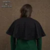 The wool-rich fabric ensures durability, warmth, and a drape that closely resembles historical examples, while the 30% blended fibers provide additional resilience for modern wear. Measuring approximately 43 cm in length with a full garment circumference of 267 cm, this cape offers excellent coverage without excess bulk.