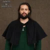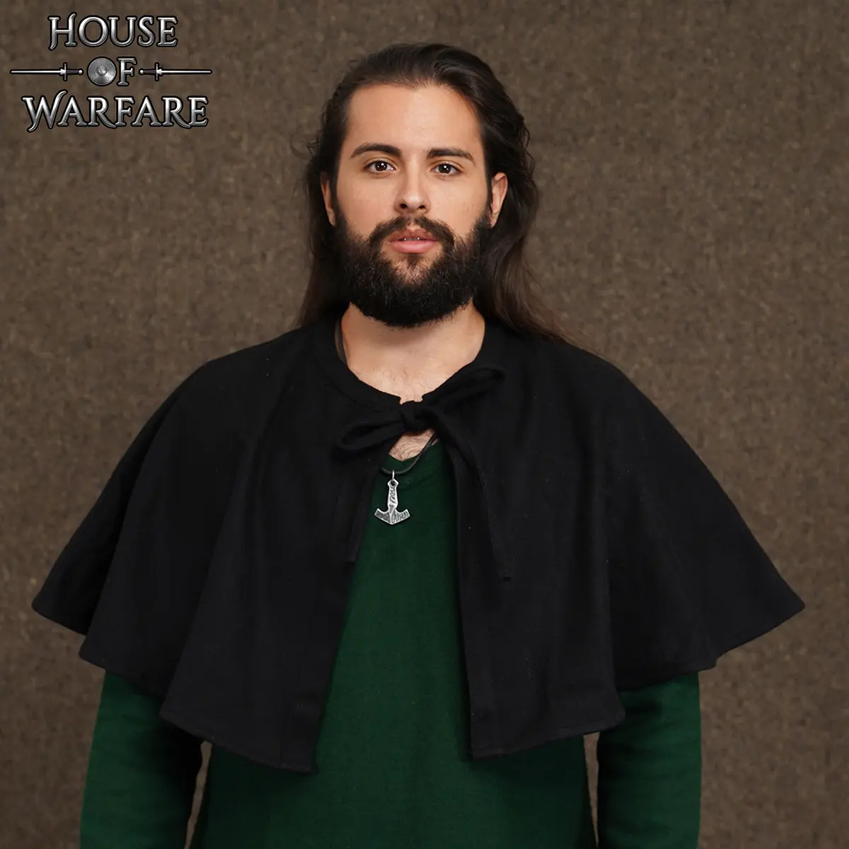 Unlike full-length cloaks, the short mantle was especially practical for everyday use, travel, or combat, as it allowed full freedom of movement while still shielding the shoulders and chest. The tie closure at the neck reflects period-correct fastening methods, often seen in illuminations and surviving garments of the Middle Ages.