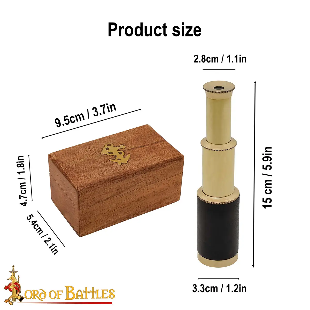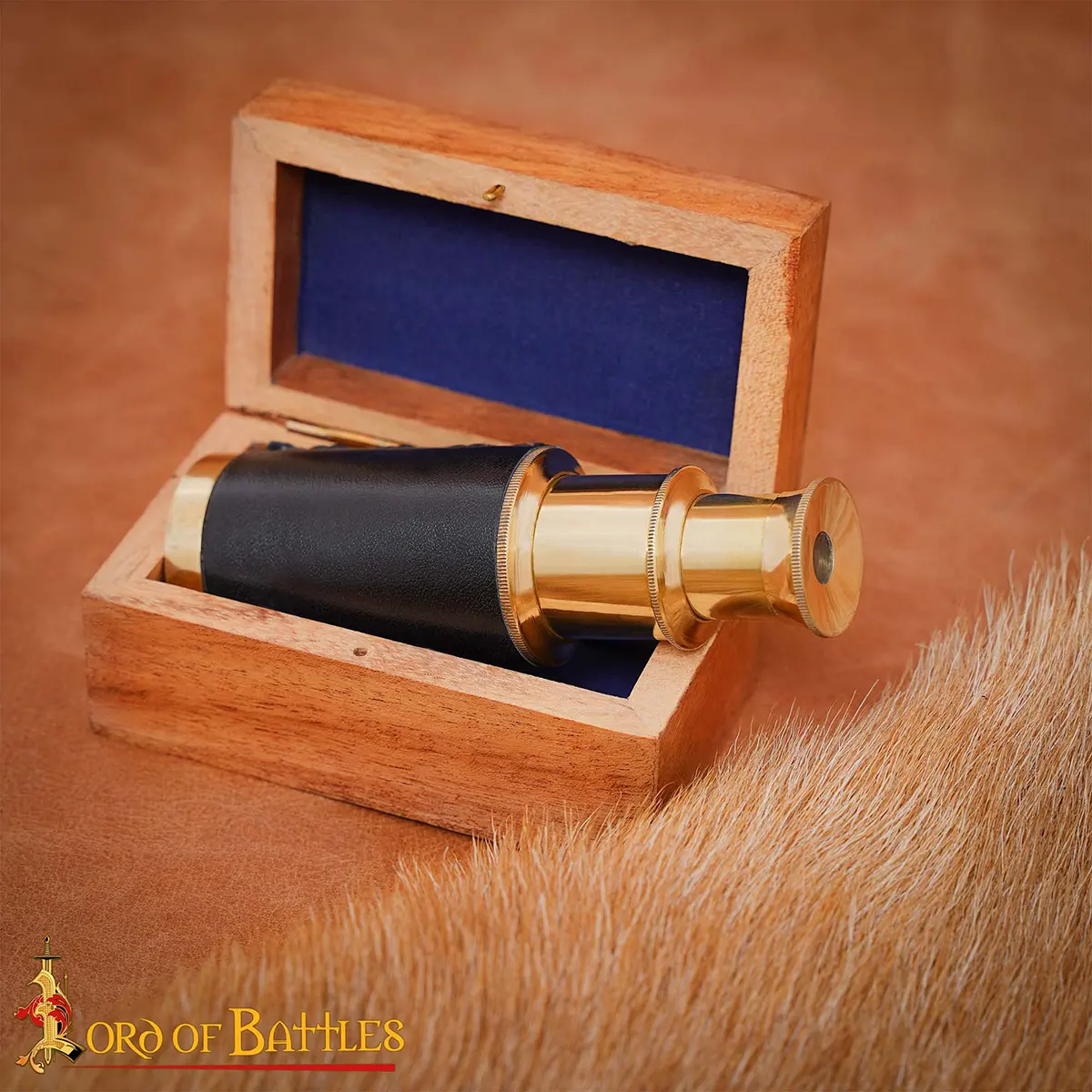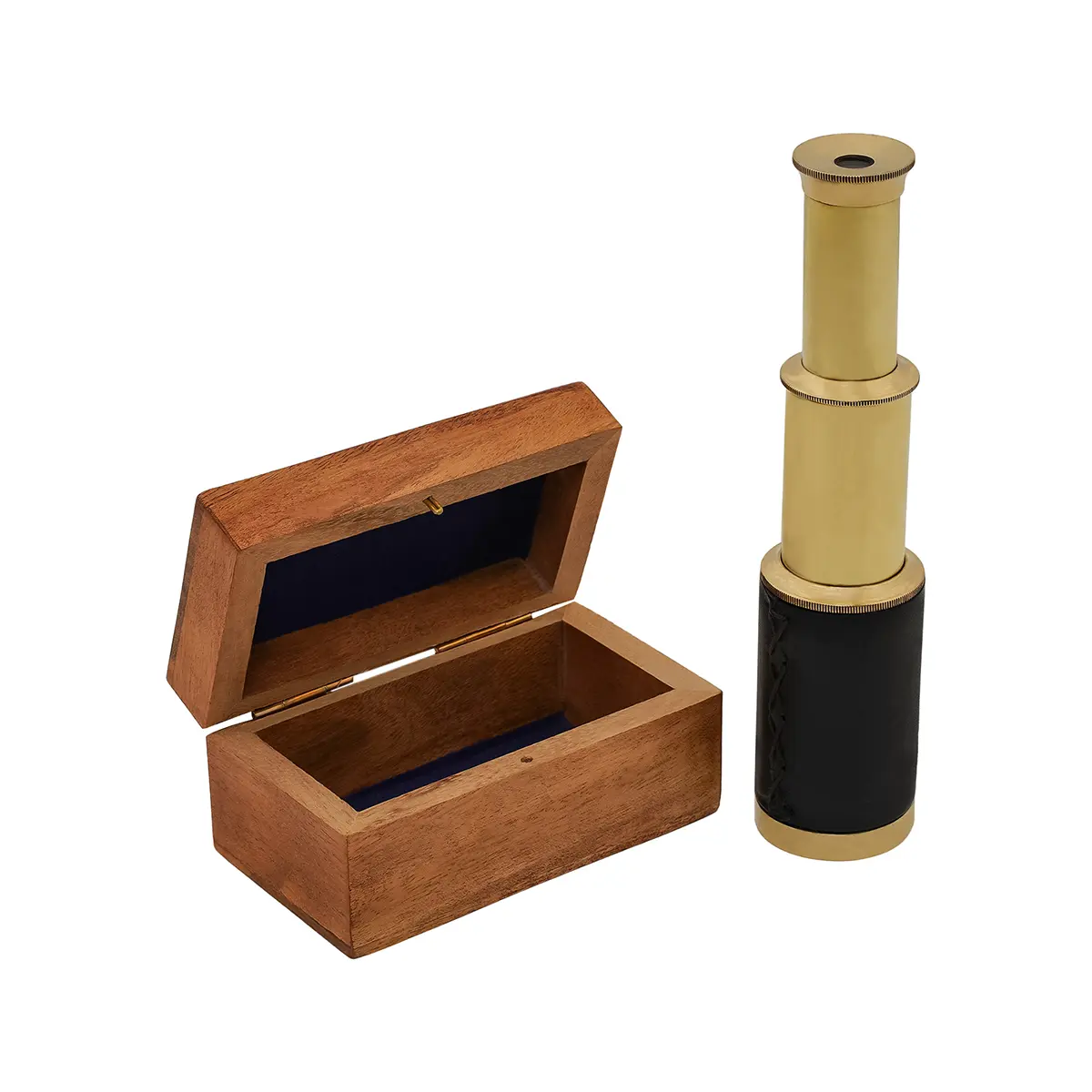 Mini Pure Brass Telescope with Small Wooden Chest Box
