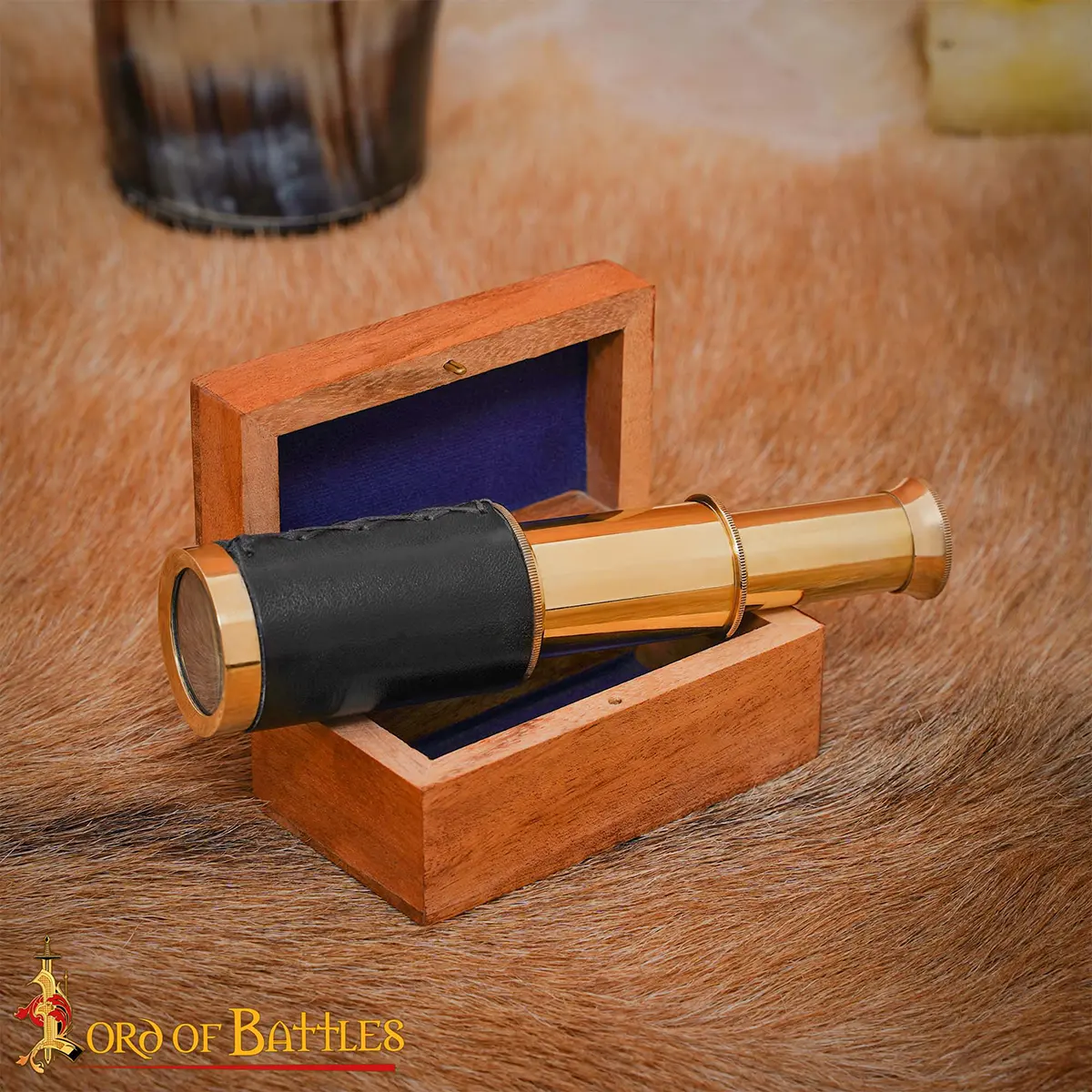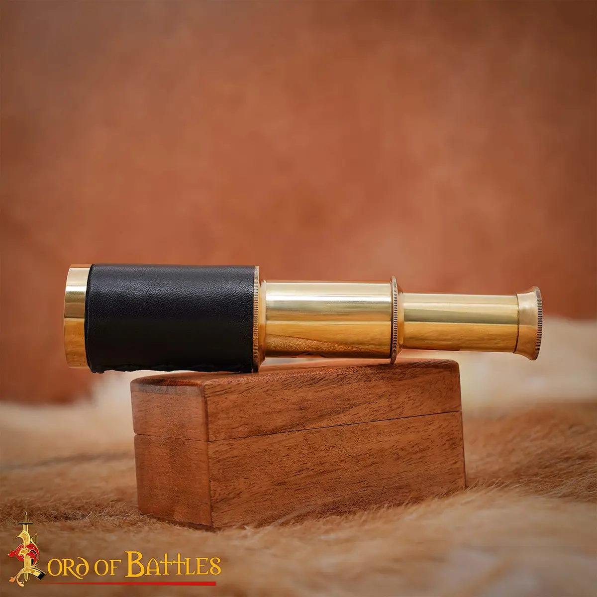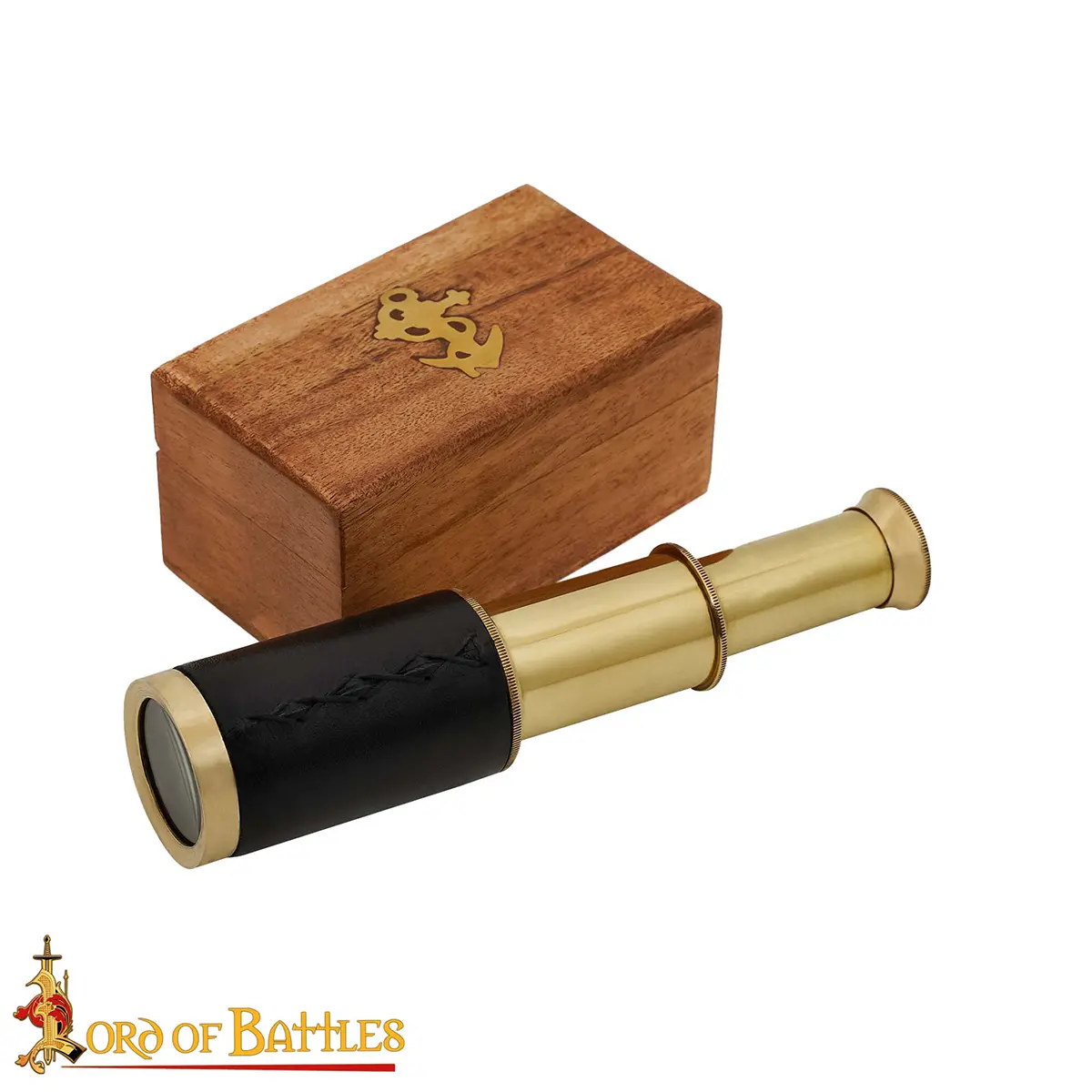 Mini Pure Brass Telescope with Small Wooden Chest Box