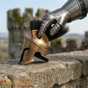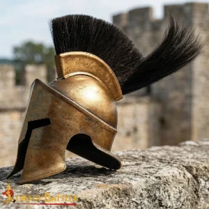 This Miniature Spartan Helmet works perfectly as a decorative collectible, a gift for history enthusiasts, or a display item for fans of ancient Greek culture. The combination of steel construction, brass finish, and plume creates a striking mini helmet that stands out in any setting.