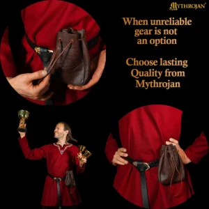 • PERFECT SIZE: Mythrojan’s Medieval Leather Pouch 7”×5” (17.7cm×12.7cm) is the perfect companion for any adventure. The belt loop is ideal for belts up to 3.5” wide. Sturdy, reliable, and easy to close, they will KEEP YOUR GOLD, DICE, KEYS, AND ALL YOUR PRECIOUS BELONGINGS, safe during your epic weekends. Whatever your favorite universe or character, its authentic look, and adaptable shape will prove more than useful in any event or even in your everyday life!