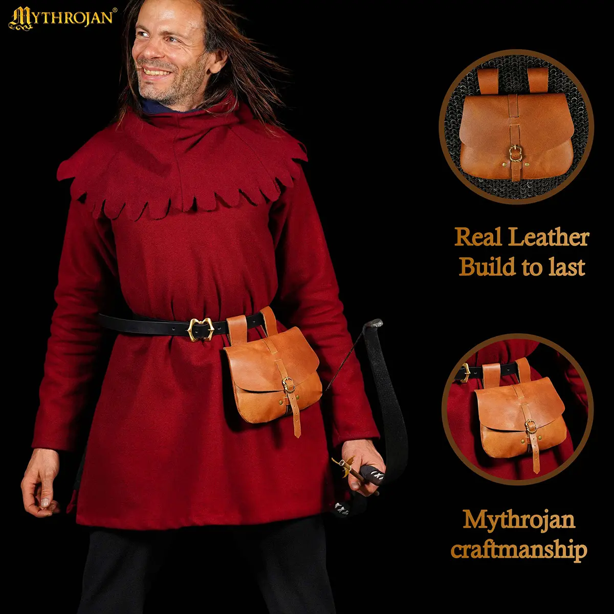 Each pouch is handmade from natural leather, so slight variations in color, stitching, or texture are normal and add to its authentic medieval character.