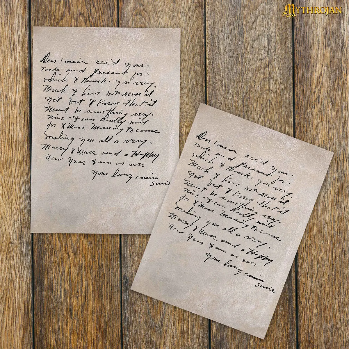 Sized conveniently at 8×11 inches, it is versatile enough for writing letters, creating scrolls, drawing fantasy maps, practicing calligraphy, or drafting immersive LARP and SCA documents. Whether you’re scribing a medieval charter, designing a wizard’s scroll, or crafting a tabletop RPG prop, this parchment offers a historically accurate canvas that elevates every project.