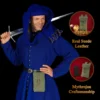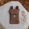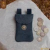 Its classic flap design is secured with an antique-inspired brass button, adding an extra touch of historical charm while keeping your belongings safe. This pouch provides ample space for your coins, keys, cards, or other small essentials without appearing bulky on your belt.