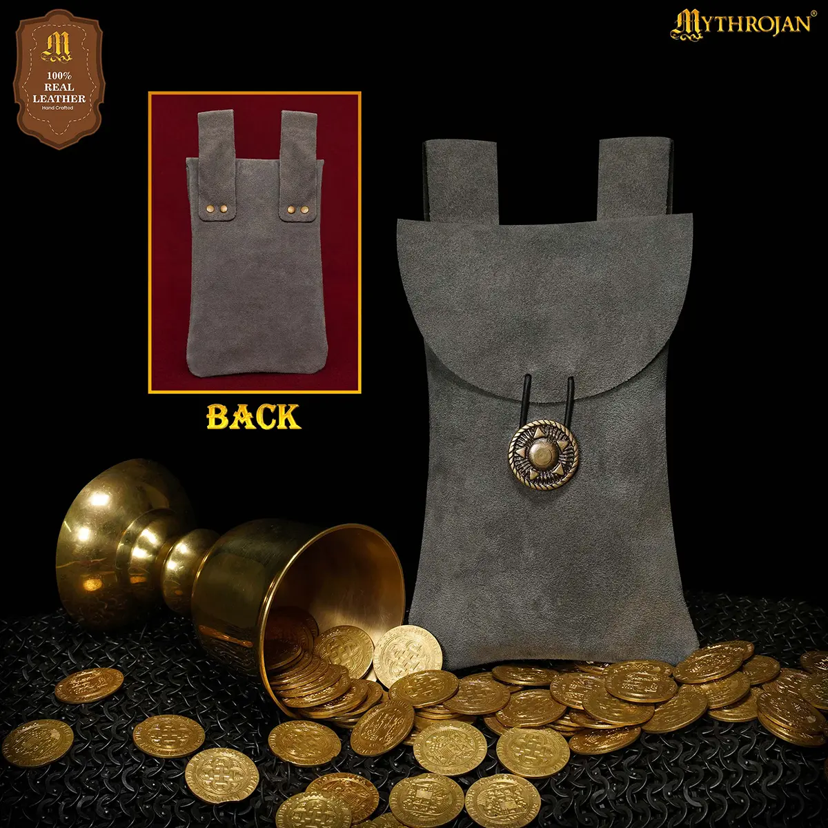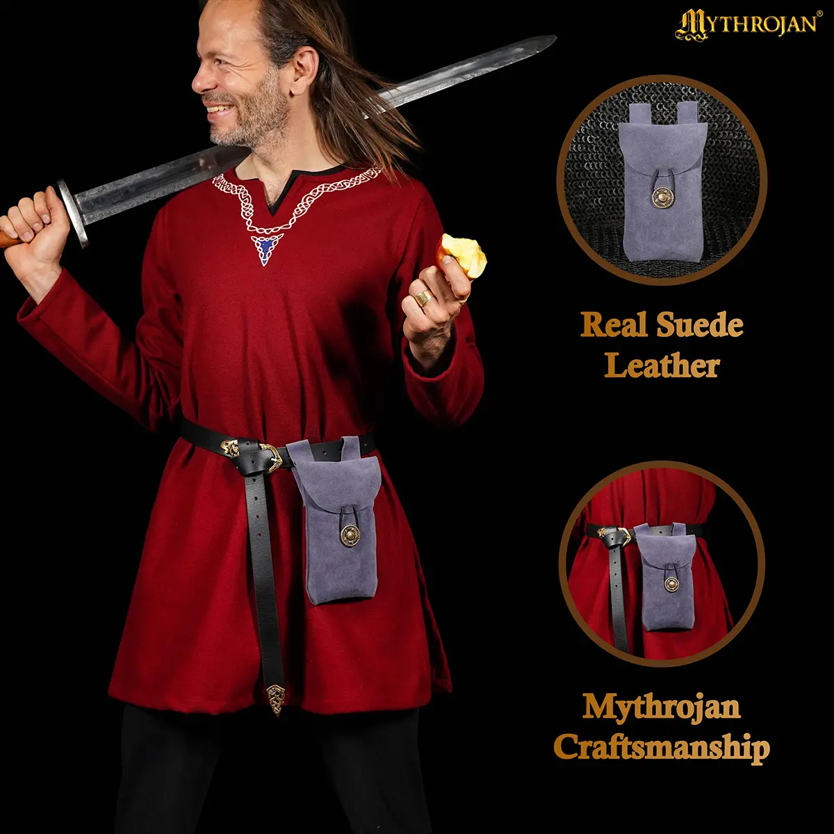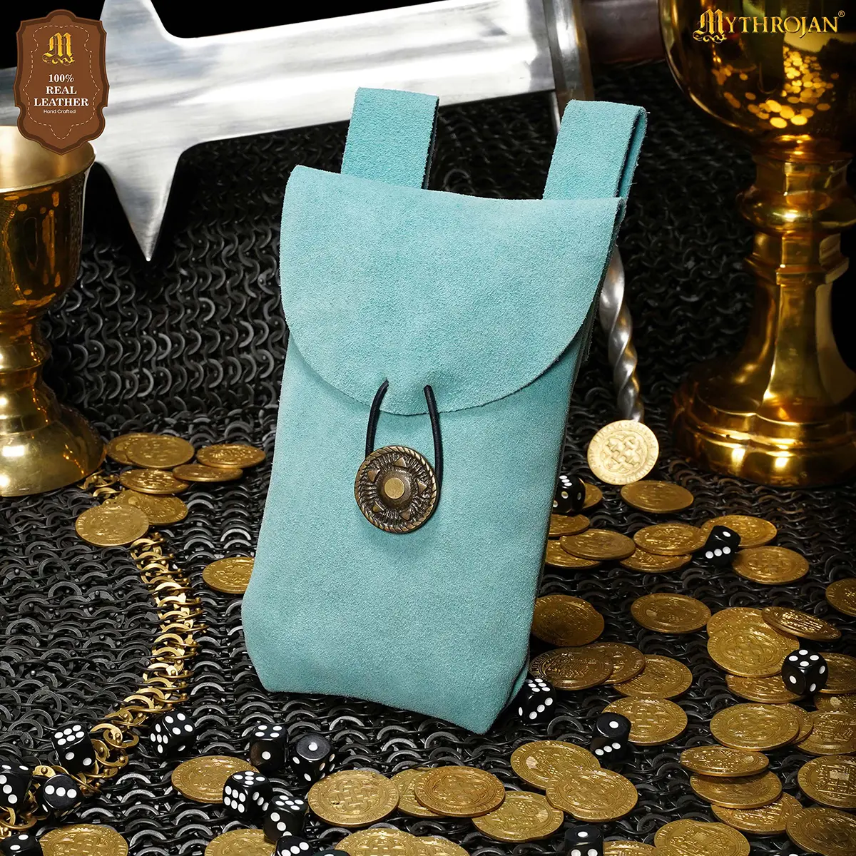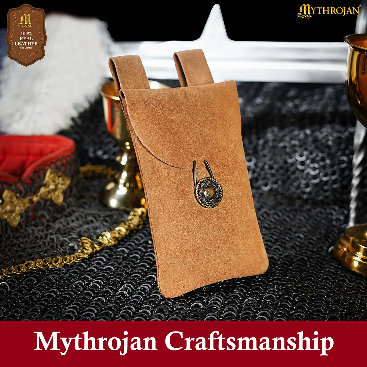 Step into the spirit of the Middle Ages with the Mythrojan Suede Leather Belt Pouch, a timeless accessory blending authentic style with practical utility. Handcrafted from 100% natural suede leather, this pouch provides both durability and a refined texture, making it a reliable companion for festivals, costuming, or everyday use.