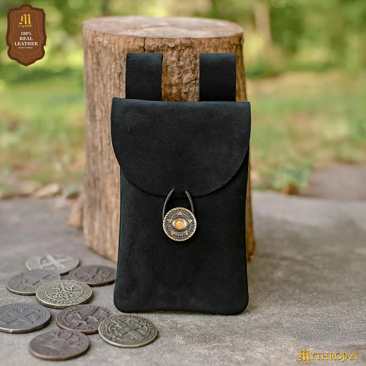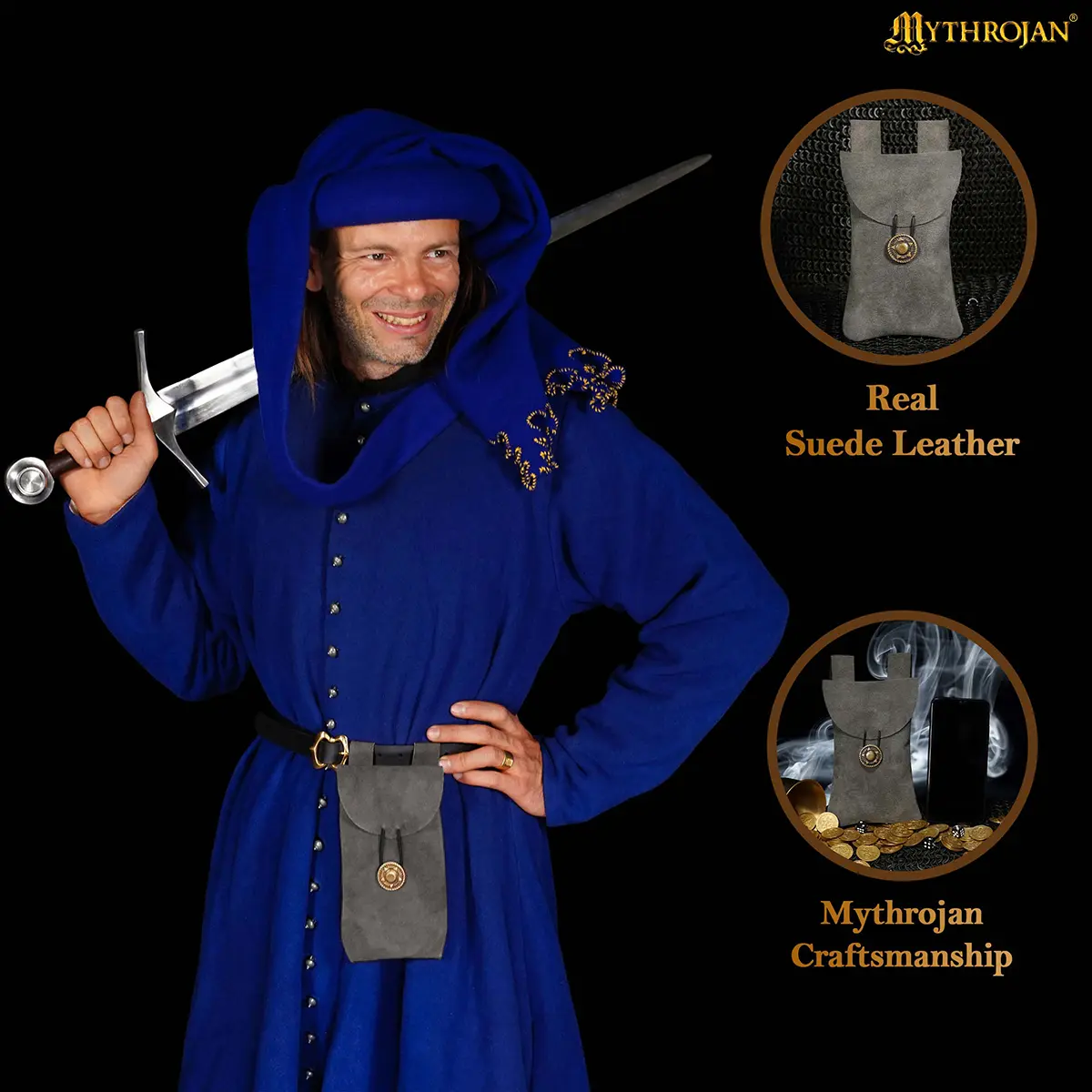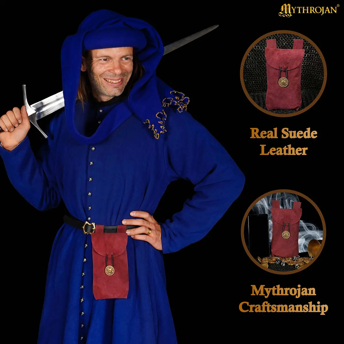 Step into the spirit of the Middle Ages with the Mythrojan Suede Leather Belt Pouch, a timeless accessory blending authentic style with practical utility. Handcrafted from 100% natural suede leather, this pouch provides both durability and a refined texture, making it a reliable companion for festivals, costuming, or everyday use.