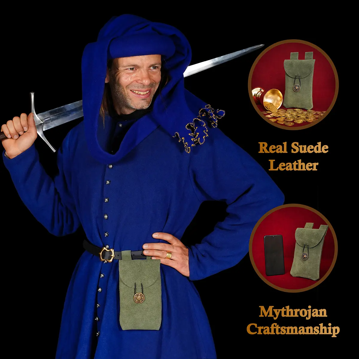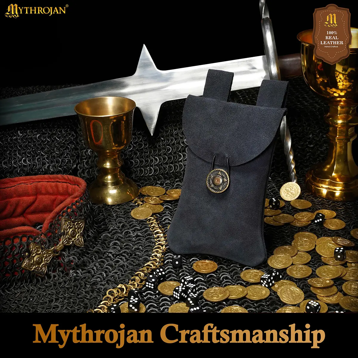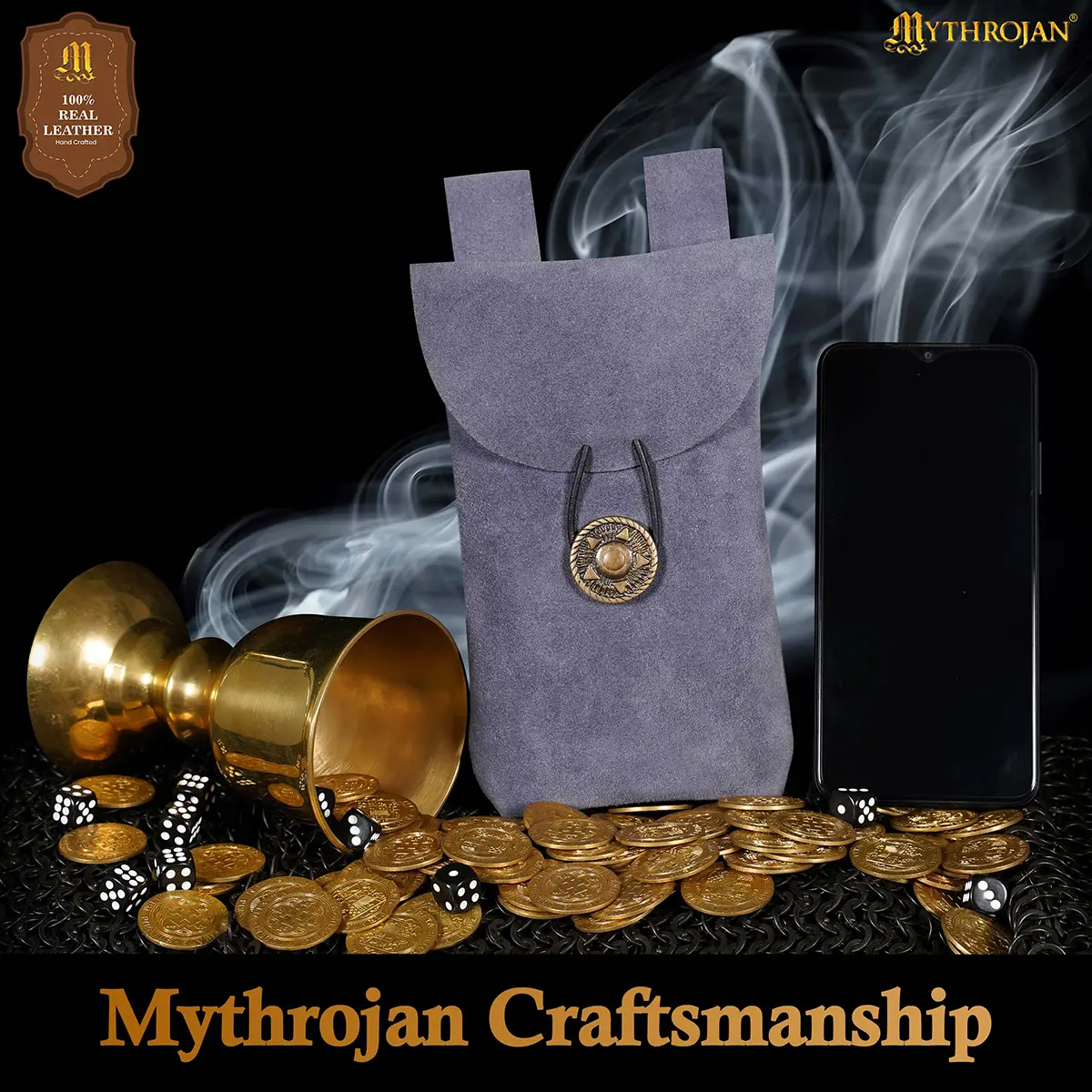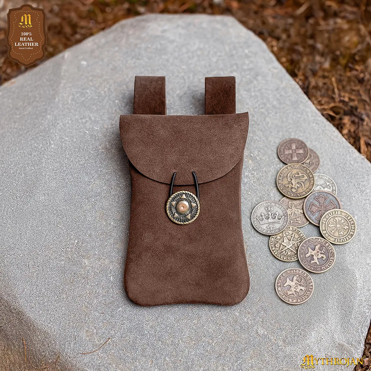 Step into the spirit of the Middle Ages with the Mythrojan Suede Leather Belt Pouch, a timeless accessory blending authentic style with practical utility. Handcrafted from 100% natural suede leather, this pouch provides both durability and a refined texture, making it a reliable companion for festivals, costuming, or everyday use.