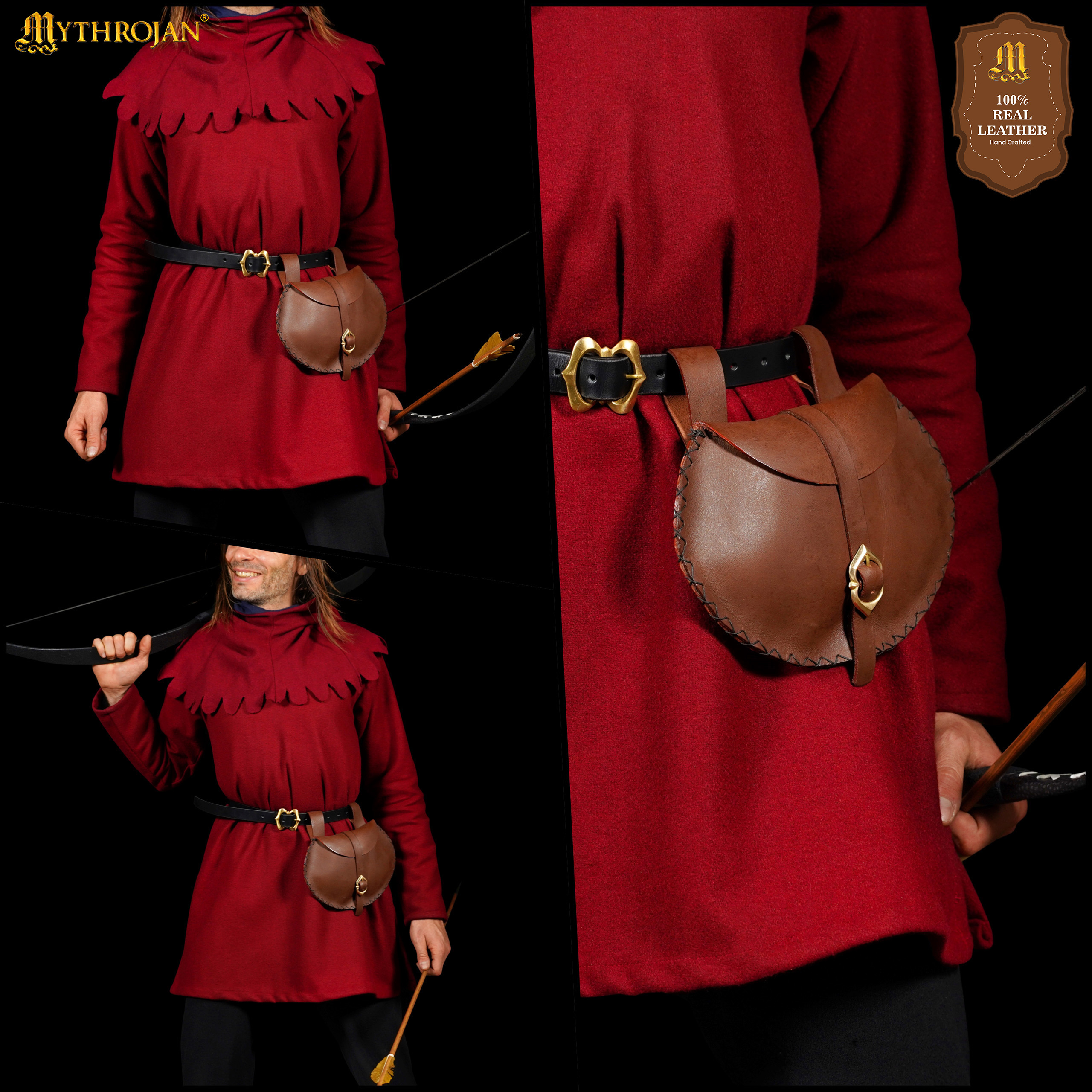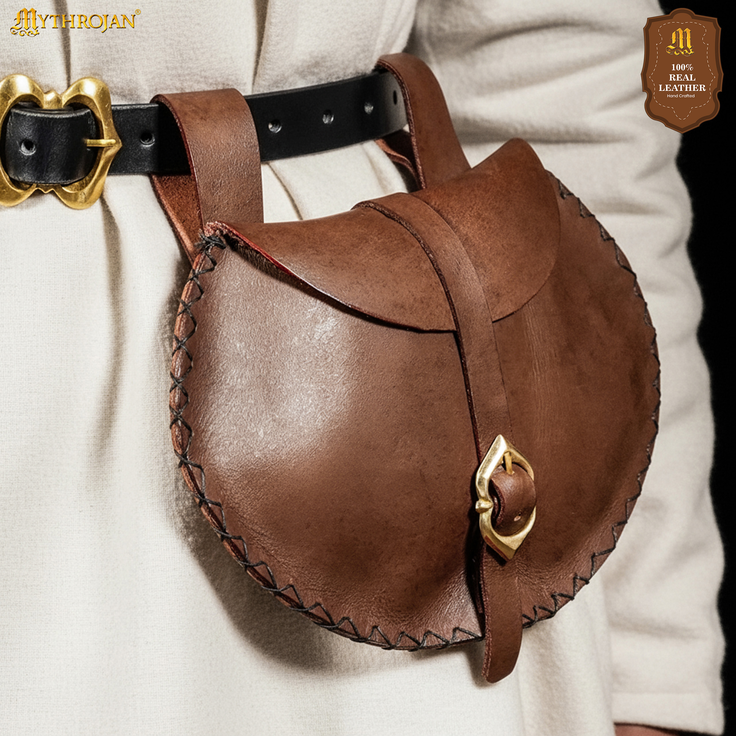 Mythrojan Medieval Viking Leather Belt Pouch LARP Renaissance Waist Bag