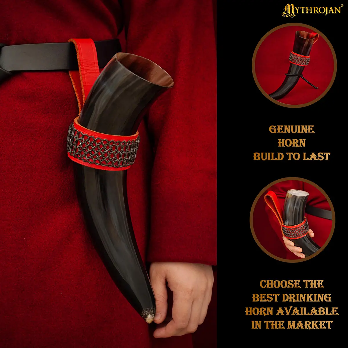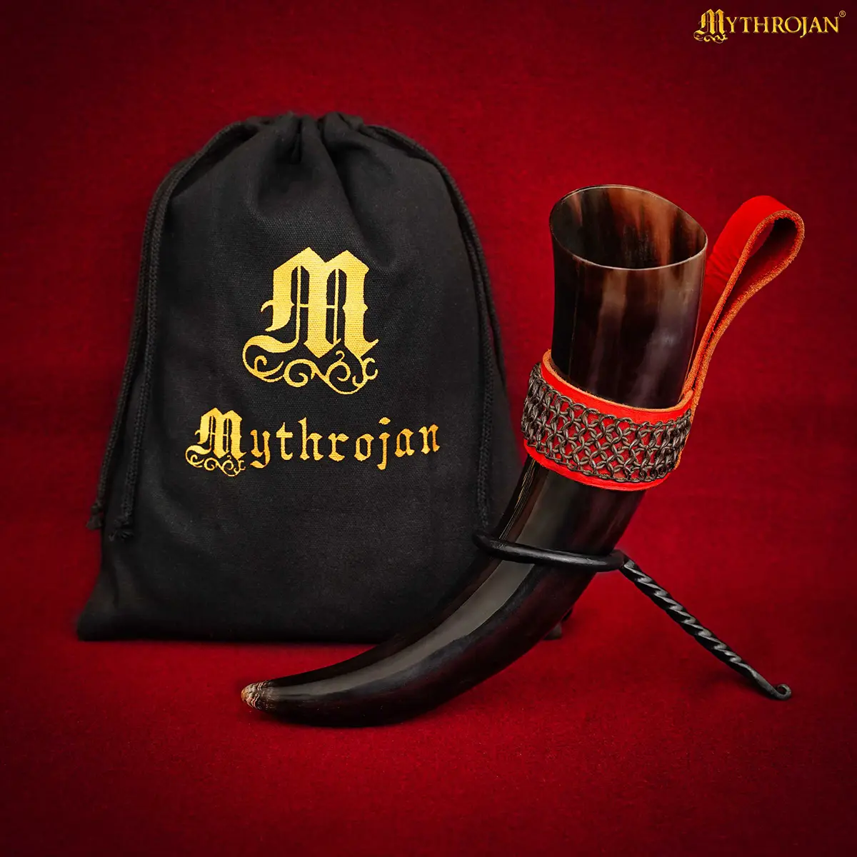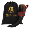 Mythrojan THE WITCHER COMPANION Viking Drinking Horn with Red Leather Holder Authentic Medieval Inspired Viking Wine/Mead Mug – Polished Finish