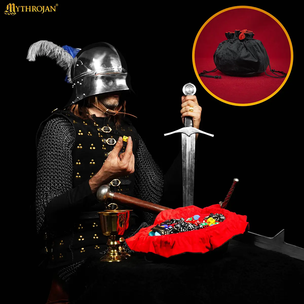 - PERFECT SIZE: Mythrojan’s Dungeon Master bag is the perfect companion for any adventure. Sturdy, reliable, and easy to close, with an inner diameter of 24.1 cm (9.5“), an outer diameter of 35.5cm (14”), and a base measuring 15.2 cm (6”), this large dice bag will KEEP YOUR GOLD, KEYS, AND MULTIPLE SIDED DICE safe during your epic weekends! Whatever your favorite universe or character, its elegant look, and adaptable shape will prove more than useful in keeping your D4, D8, D10, D12, D16, D20, D30, or D100 well organized at any event or even in your everyday life!