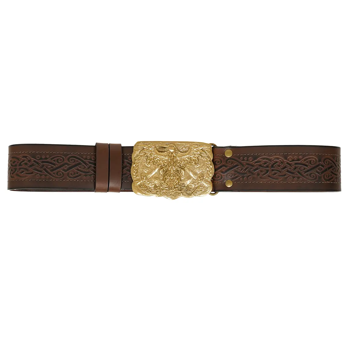 Mythrojan URBAN VIKING BELT WITH ODIN RAVEN SOLID BRASS BUCKLE & Embossed real leather