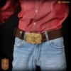 - FORGET ABOUT THE POOR PERFORMANCES OF OTHER FAKE LEATHER BELTS! We are talking about REAL GENUINE LEATHER here! Our experience with the FILM INDUSTRY has forged our standards, and you can be sure that the quality of Mythrojan-selected leather will ensure a LONG-LASTING LIFE and durability of your favorite belt! And the HIGHLY ADJUSTABLE VELCRO CLOSING SYSTEM gives it a size that fits most.