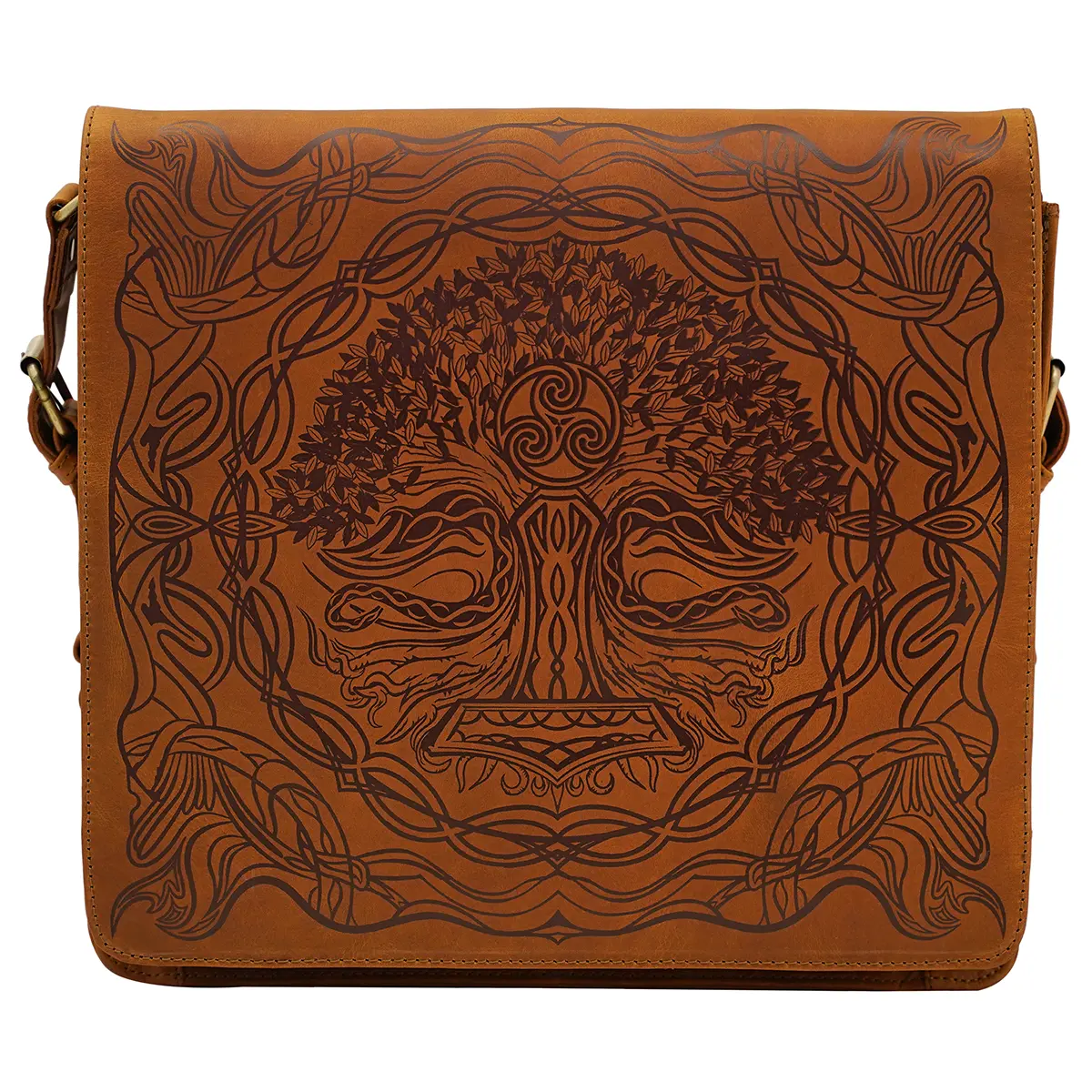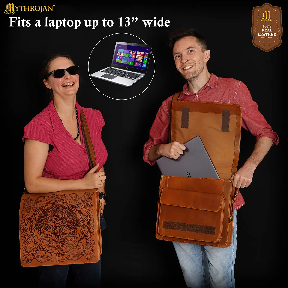 Mythrojan URBAN VIKING SATCHEL REAL LEATHER 14″ Mjolnir messenger bag Vintage Celtic Laptop Briefcase