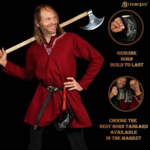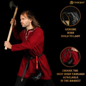 This tankard is made from real ox horn and will have natural variations in color, texture, and shape. Over time, with use and exposure, natural cracks may appear if not properly cared for.