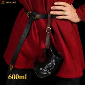 Every horn showcases its own distinctive grain and luster, polished to a glossy finish that enhances its natural beauty. The ergonomic horn handle ensures a steady and comfortable grip, making it a pleasure to lift during toasts. The included leather belt holster, crafted from genuine brown leather and fitted with a brass buckle, allows you to carry your mug with pride, perfect for historical festivals, mead halls, or outdoor gatherings.