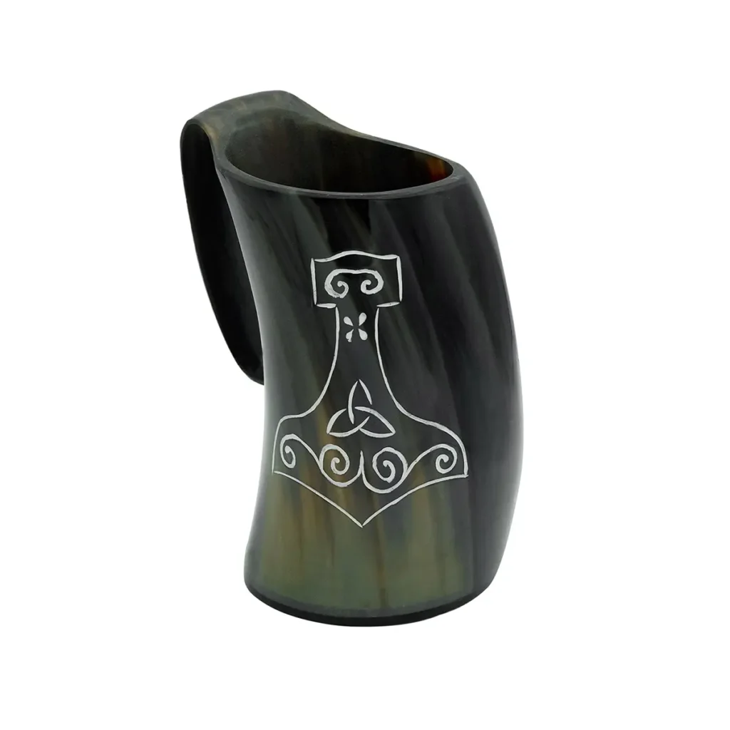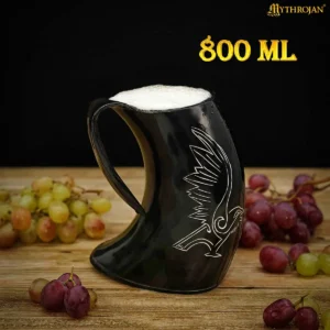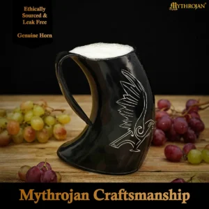 Channel the spirit of the Allfather’s messenger with this Viking Raven Ox Horn Tankard—an authentic piece of Norse heritage. Hand-carved from natural ox horn, this tankard proudly displays the engraved raven, a symbol deeply rooted in Viking lore representing wisdom, prophecy, and divine guidance.