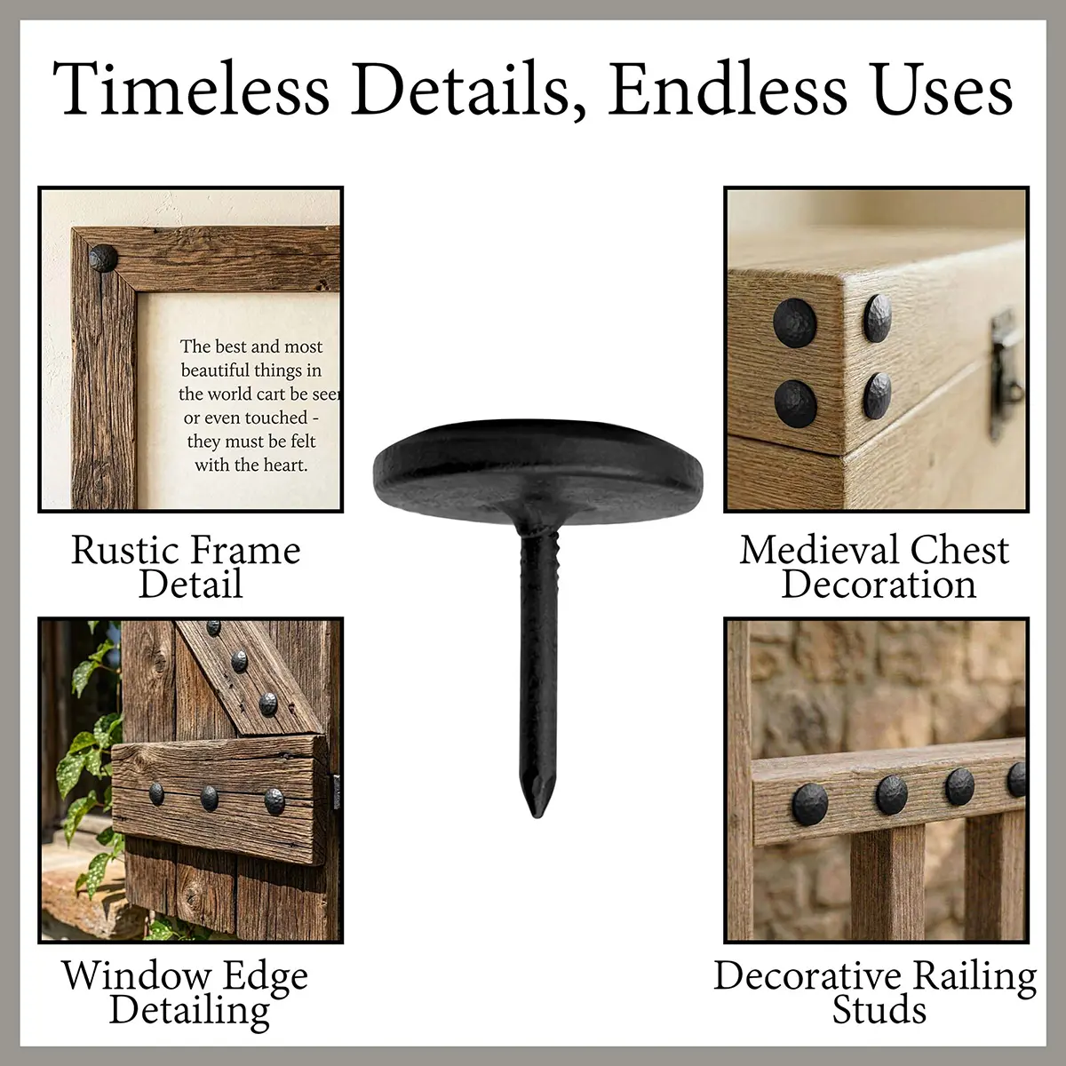 Nails Iron Long Round Clavos Decorative Nails, Hand Forged, Natural Oil Blackened Finish
