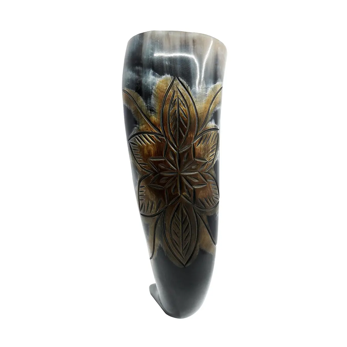Note: Each horn is made from natural ox horn and finished by hand. Variations in color, grain, shape, and burned pattern are natural.