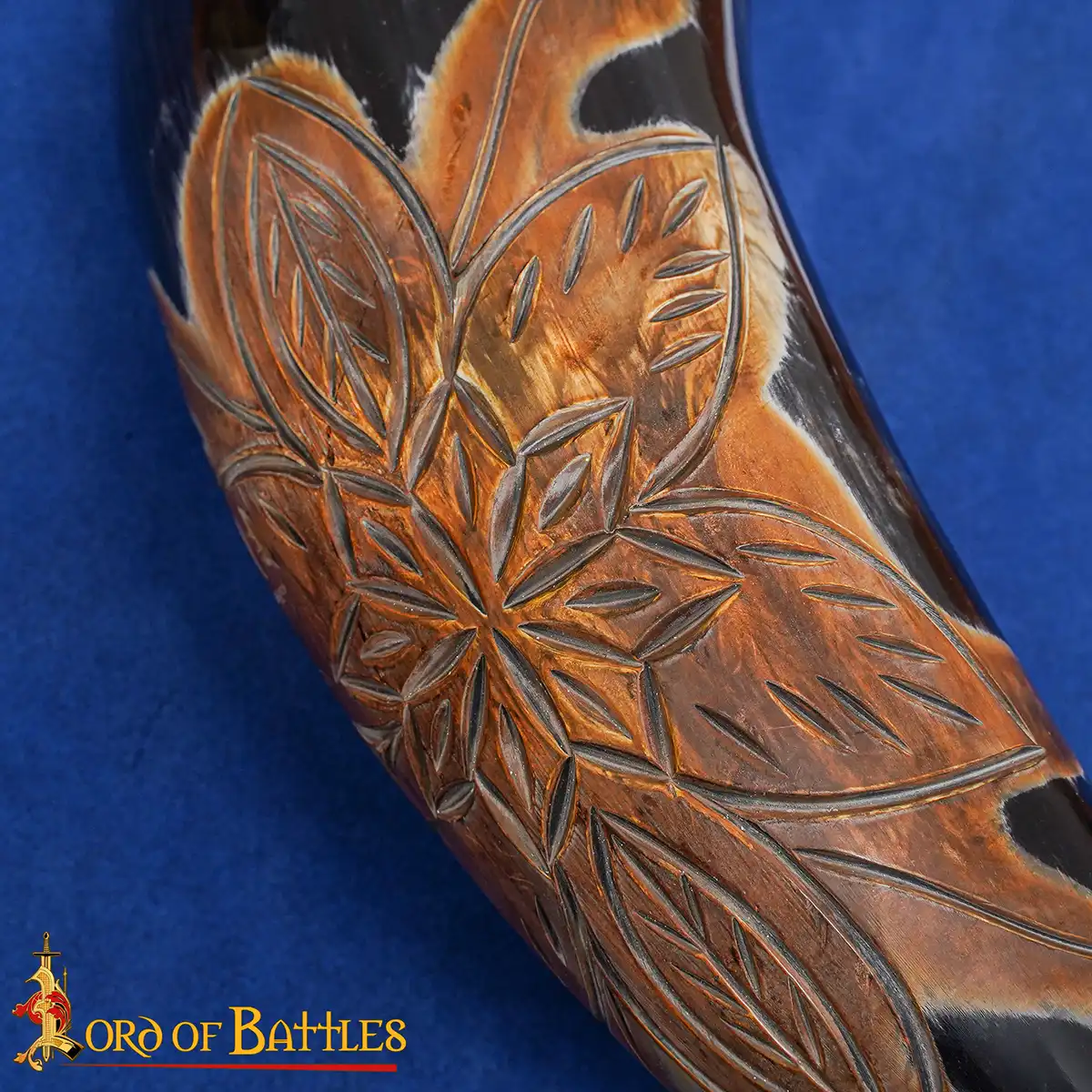 This piece works perfectly as a viking horn for themed events, for collectors and display. Whether used at a feast, carried to a LARP event, or placed on display, it is both functional as well as decorative.