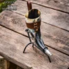 This Drinking Horn with Leather Holder works perfectly as a viking drinking horn for mead, ale, cider, or other cold and room-temperature drinks. It is ideal for Viking events, LARP, medieval fairs or decorative display.