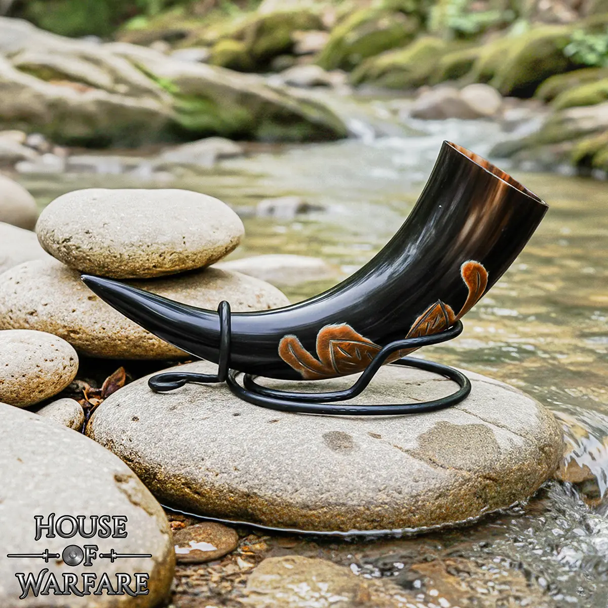 This Viking horn stand is made for stability and practical use. It has a wide, balanced base to prevent tipping, secure cradle support for curved horns and safe display for home décor or collections Drinking horn is not included.