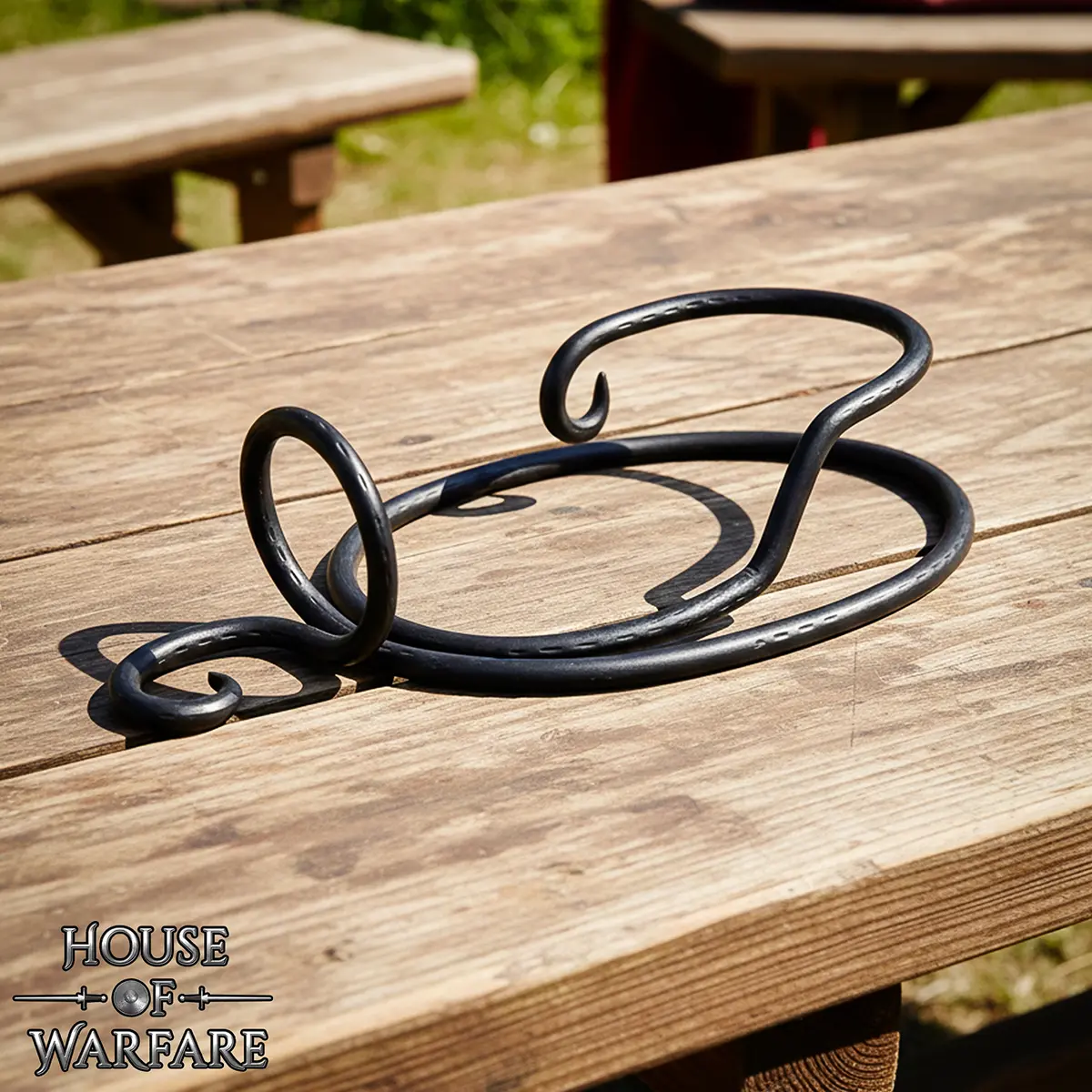 Enhance your mead hall, feast table, or display cabinet with this Horn Display Stand, hand forged from solid iron. Designed to safely hold and showcase your drinking horn.