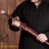 Included with the sword is a genuine leather scabbard with a shoulder belt. This helps the sword to be worn comfortably at Renaissance fairs, festivals, LARP events, or for costume use. When not worn, it also makes the sword easy to store or display as a decorative piece.