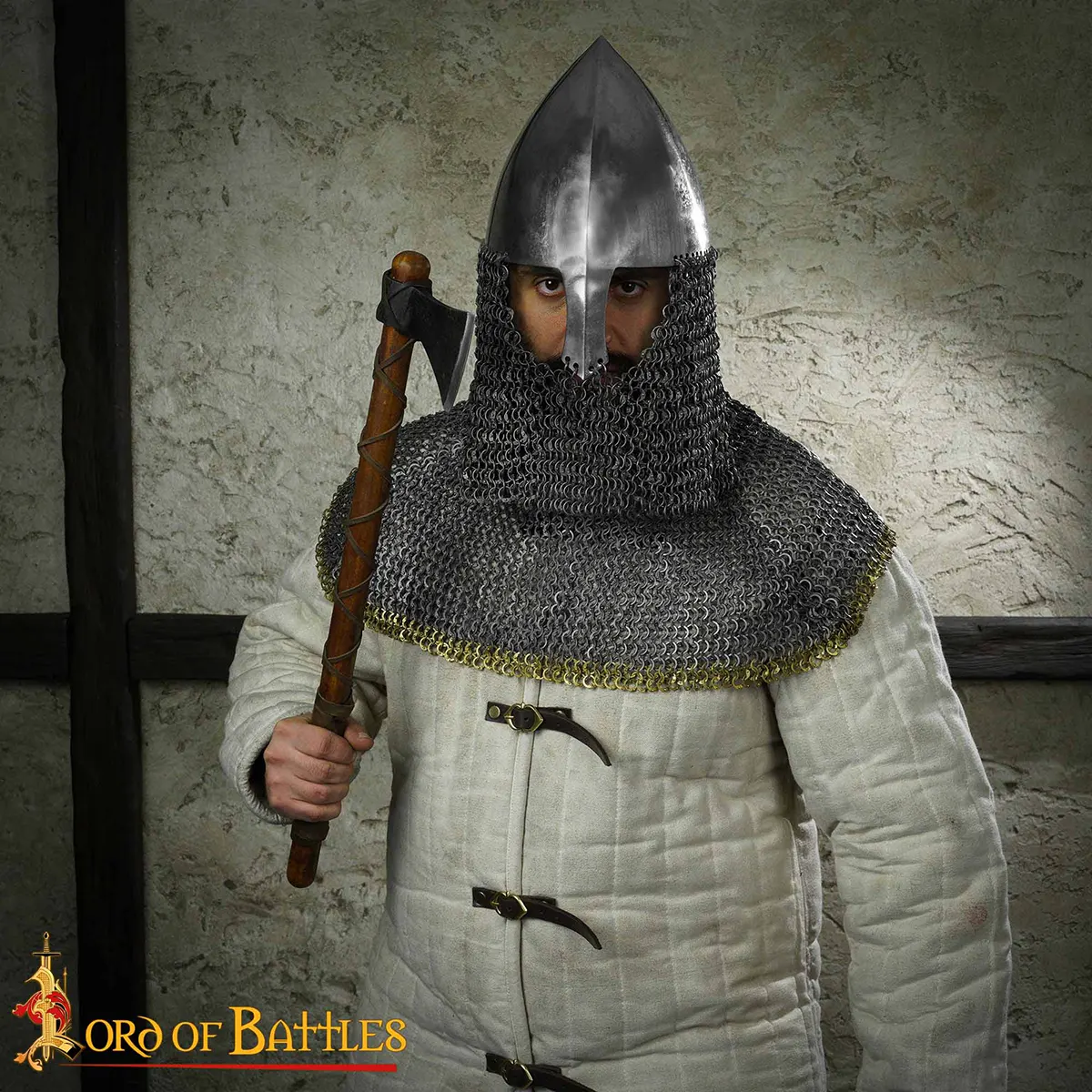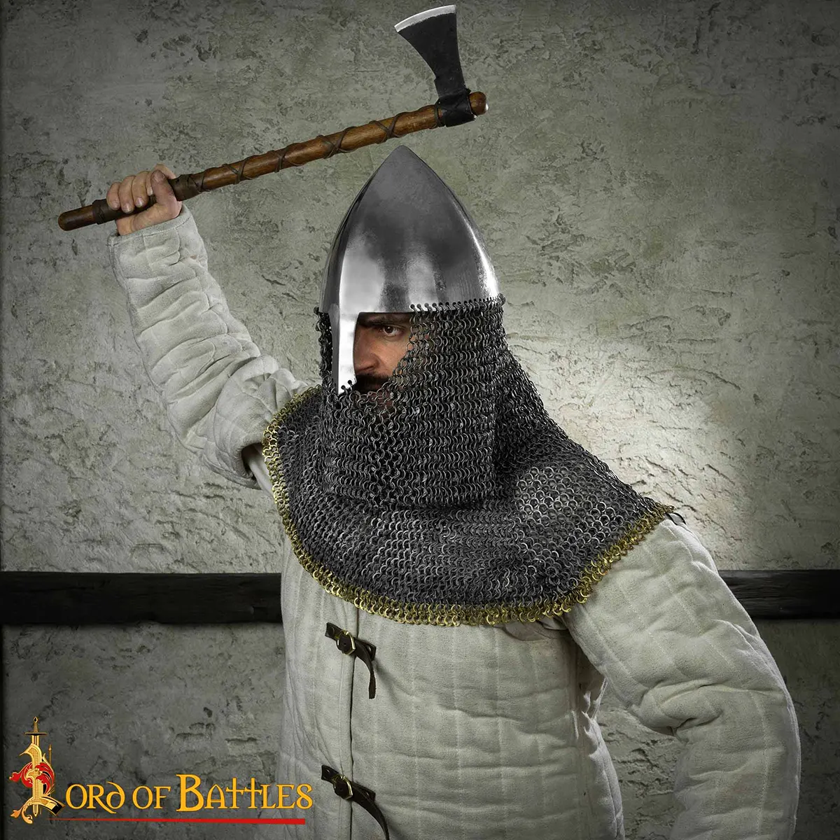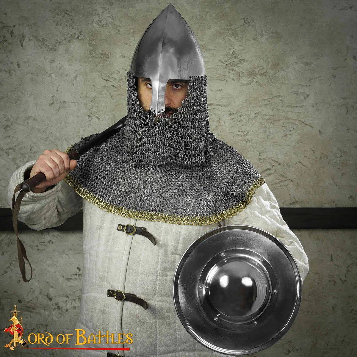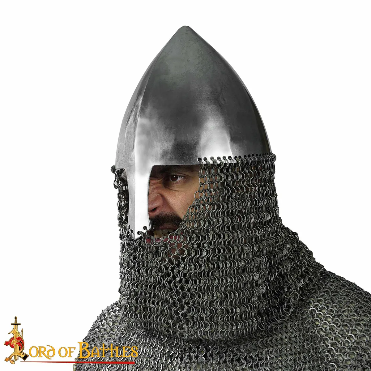 This Norman nasal helmet pairs seamlessly with a chainmail coif (sold separately), making it an essential addition to any medieval kit.