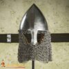 Step back in time with the Olmutz Nasal Helmet, a remarkable piece of historical warfare equipment that transports you to the 11th century. Handcrafted from robust 12 gauge mild steel, this helmet is not just a collector’s piece, but a testament to the skilled craftsmanship of that era. The design is inspired by the iconic nasal helmets discovered in the Olmutz region, located in present-day Czech Republic, as well as from several other known sites around Lake Orchowskie, Hradsko, and Lake Lednice. These helmets were prevalent during a crucial era in European history, especially between the 9th and the 13th century.