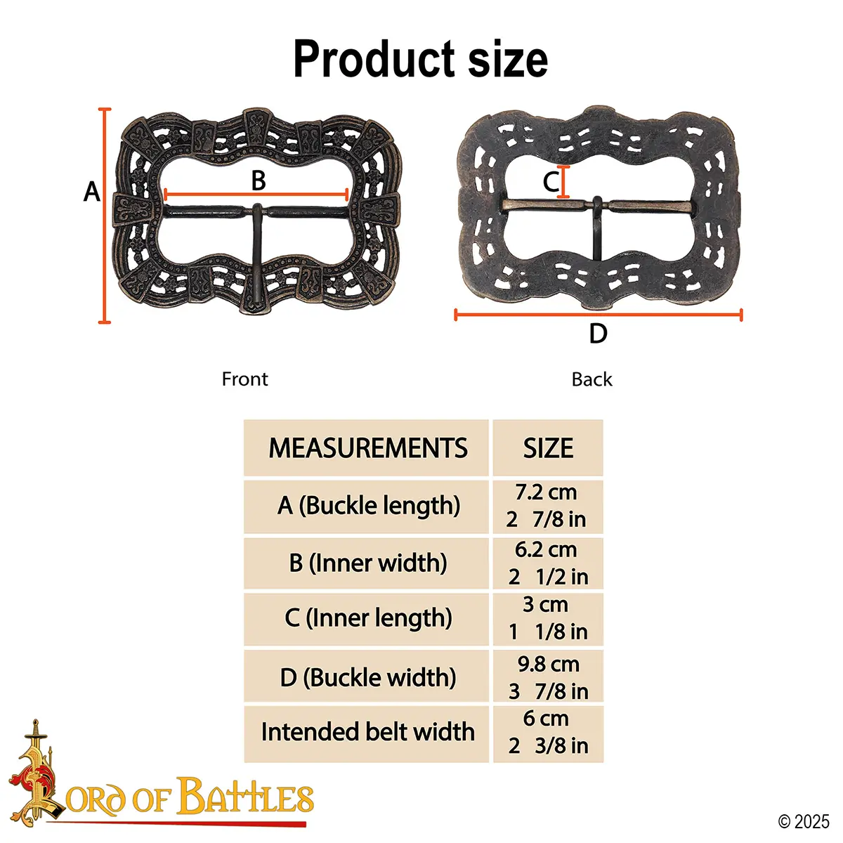 Note: This product is made from solid brass, minor variations in tone or surface texture are natural. Belt is not included.