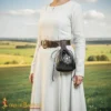 This pouch can also function as a practical medieval leather bag for reenactment outfits or themed gatherings, providing both utility and authentic style.