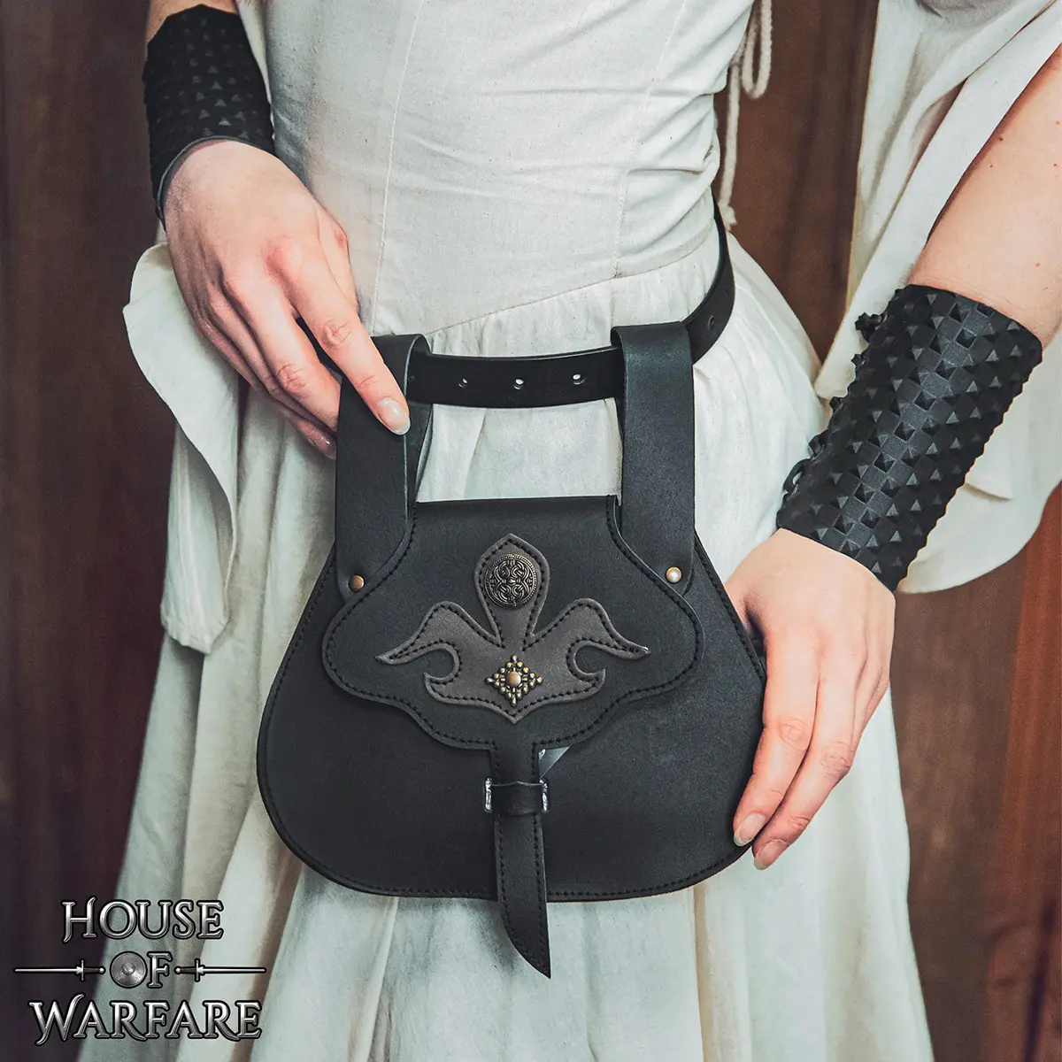 Late Medieval Leather Belt Pouch with Fleur-de-Lis Appliqué – Spanish Design: Carry your essentials with elegance with this pouch belt bag, inspired by the late medieval and Renaissance times. Designed with both style and everyday use, this belt pouch shows the style and utility favored in medieval Europe.