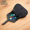 Ideal as a renaissance belt pouch, this design works easily well with both buckle and ring belts. It functions great as a small leather pouch for belt use during fairs or events, or as a compact medieval leather bag for carrying coins, keys, charms, or other small personal items.