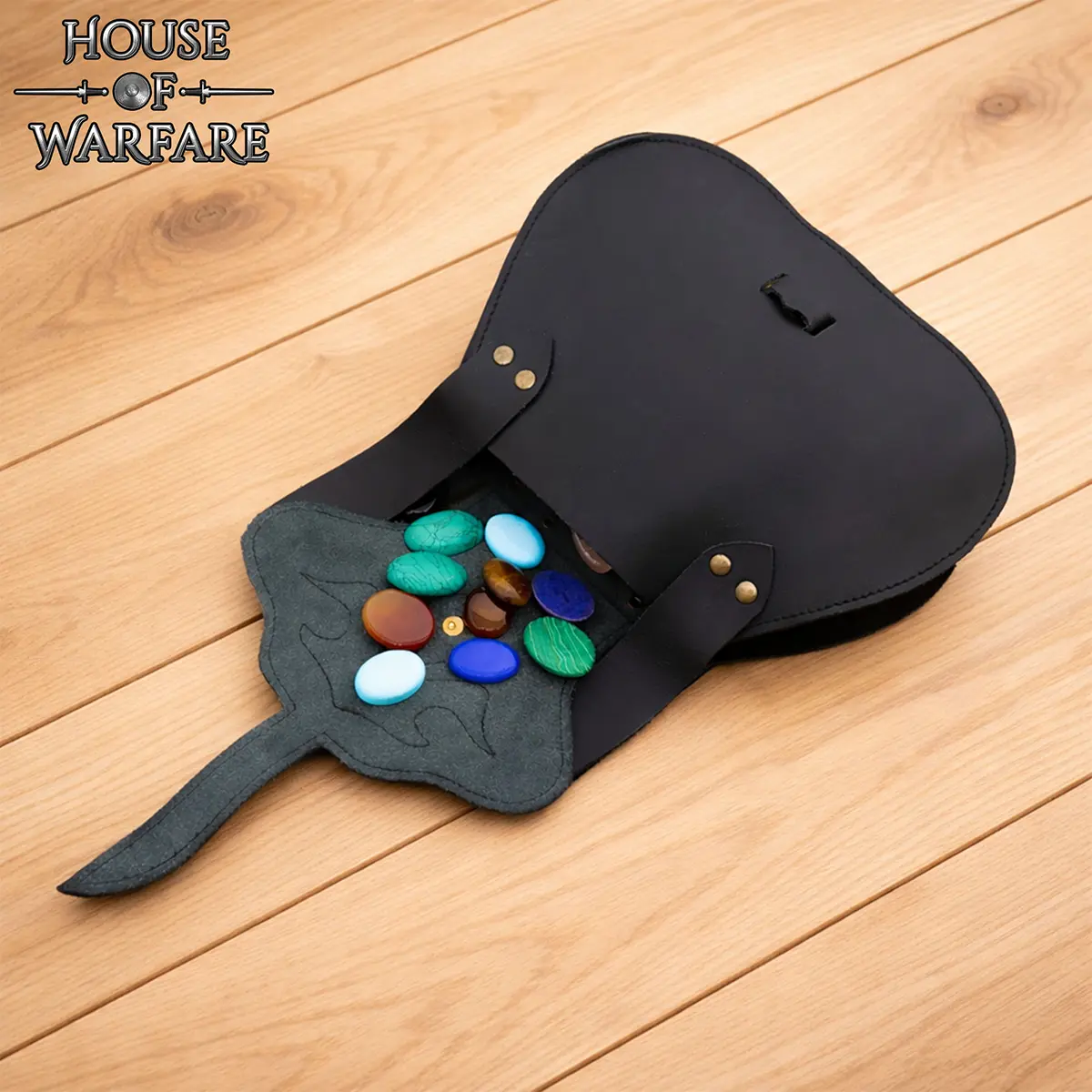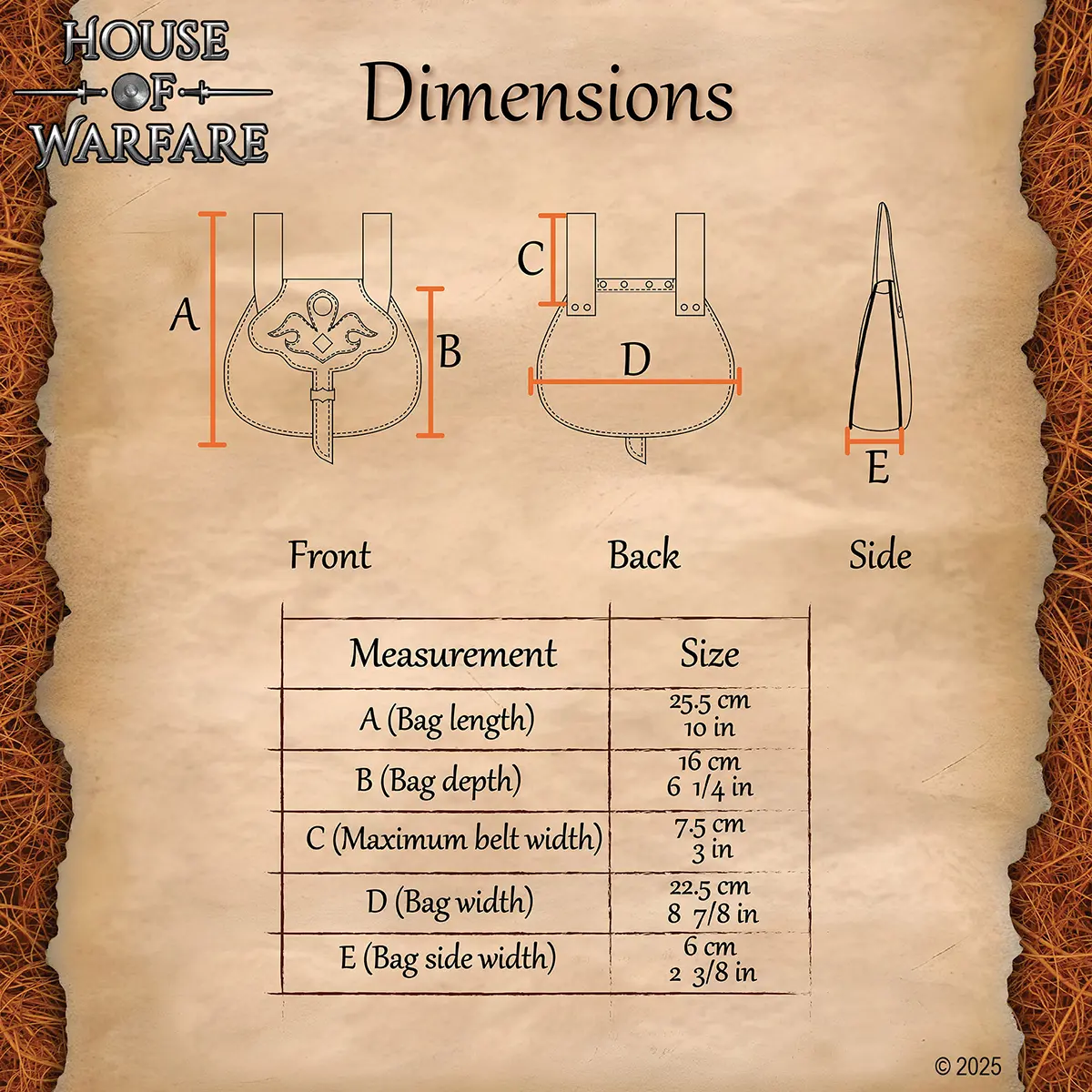 - Hardware: Antique brass studs and knotwork medallion