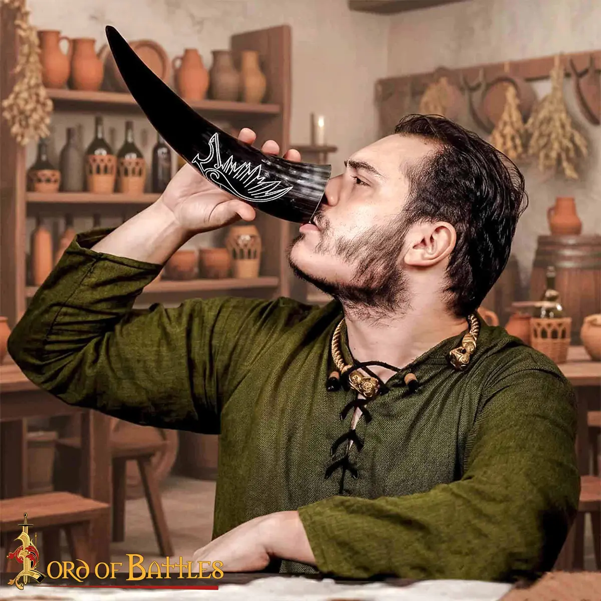 Imagine yourself at a grand feast, warriors gathered in laughter and celebration as you lift your horn high. In that moment, you are not simply drinking, you are stepping into a tradition that means strength, unity and heritage. This piece works beautifully as a Medieval drinking horn, for both function and symbolism.