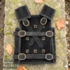 The design is influenced by historical Leather brigandine, which was popular during the 14th and 15th centuries. Traditional brigandines used hidden metal plates for protection, this modern version keeps the layered, studded look without any plates. The antique brass rivets are both decorative and functional, strengthening the structure and giving a medieval appearance.