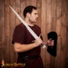This buckler shield is HANDMADE from tough 16 gauge MILD STEEL. It comes with a metal handle and is reinforced with shock-absorbing GENUINE WOOD. Its dimensions are approx. (16.1 X 11.1) inches. This is a fully functional buckler shield that can be used for historical re-enactments and décor as well.