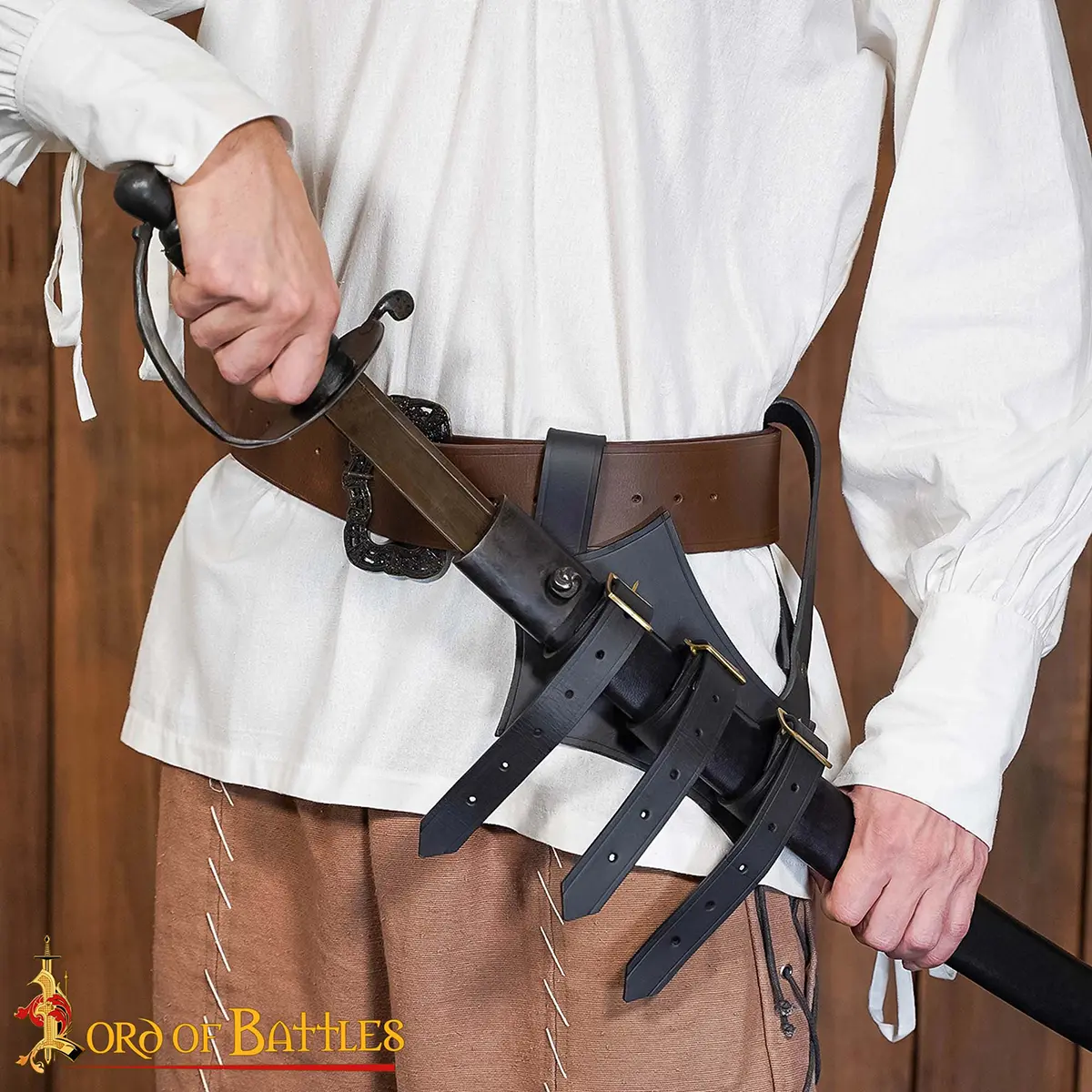 Prepare to enter a world where honor meets craftsmanship with the Medieval Leather Sword and Axe Frog. This handcrafted piece isn’t just an accessory; it’s a statement, a promise of durability, and a commitment to authenticity. The moment you clasp your sword into this gorgeous frog, you can almost feel the weight of history and tradition behind every stitch. Carved from AUTHENTIC BUFF LEATHER, it is designed to last through countless battles and adventures. Whether you’re a seasoned cosplayer, a history enthusiast, or simply someone who appreciates quality craftsmanship, this sword and axe frog is tailored for you.