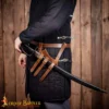 Imagine yourself at a grand masquerade, a Renaissance fair, or perhaps a themed party. You pull out your sword, kiss the blade as a sign of honor, and sheath it in the Medieval Leather Sword and Axe Frog. All eyes are on you, not just because of your weapon but because of how you carry it. The stunning design and robust construction enhance any outfit, making you stand out as the valiant hero of the story you embody.