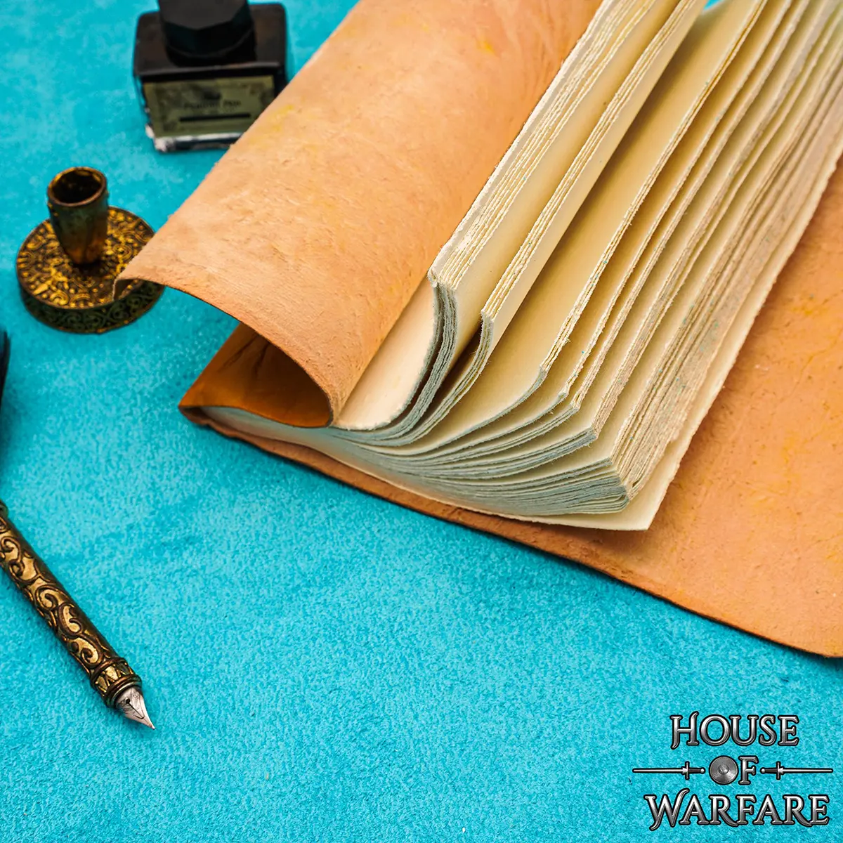 Inside, the journal has about 48 deckled-edge pages which are made from handmade, acid-free paper. Each page has its own natural texture and look, which gives the writer an authentic feel.The paper is smooth and strong, suitable for pens, pencils, and even quills, with minimal ink bleed-through.