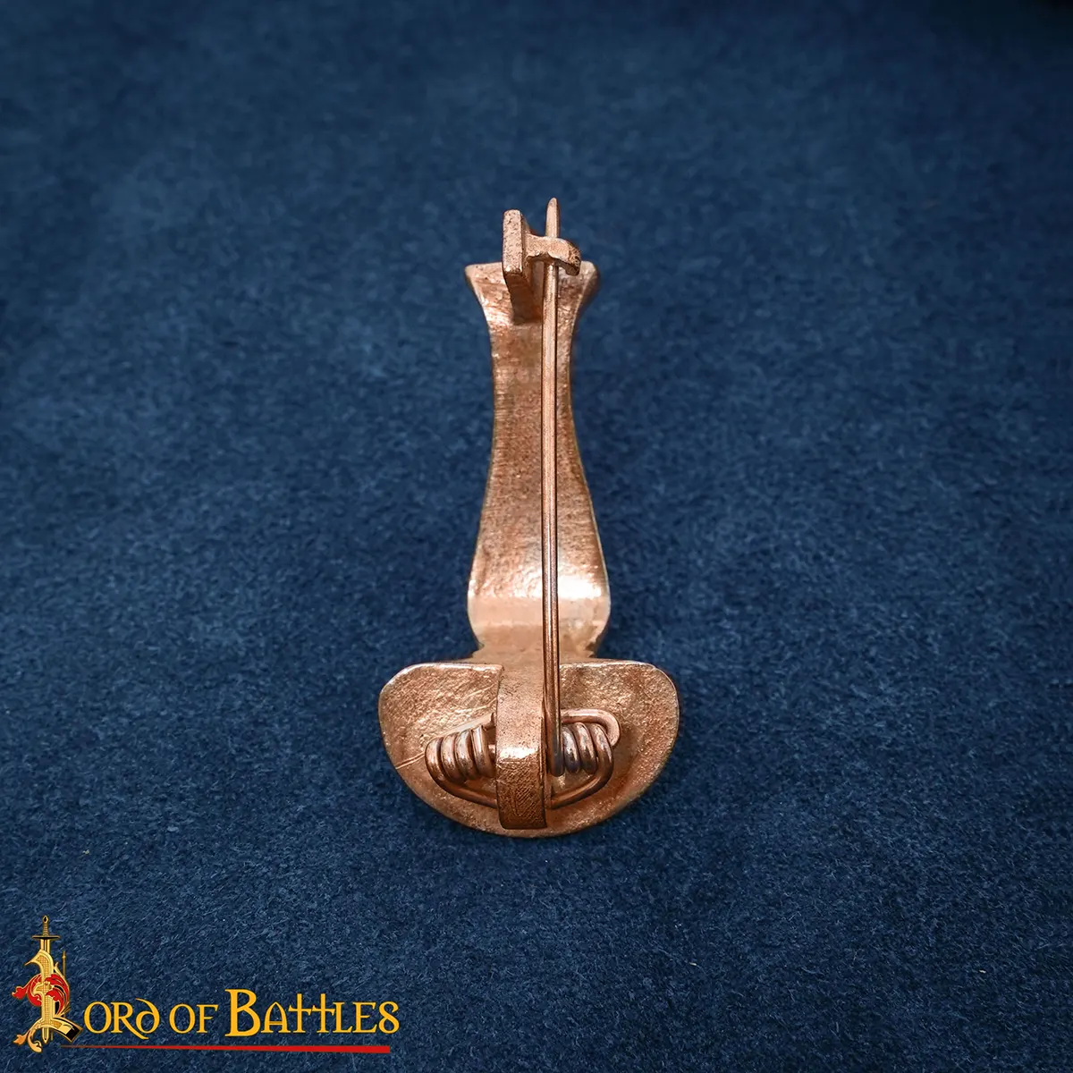 This brooch is made from the lost wax casting method from pure bronze. This was a technique used by Roman workers. A wax model is shaped first, then put in a mold. The wax is melted away and replaced with molten bronze, this helps in getting fine details and giving each piece its own character, this method helps in producing a properly detailed bronze brooch.