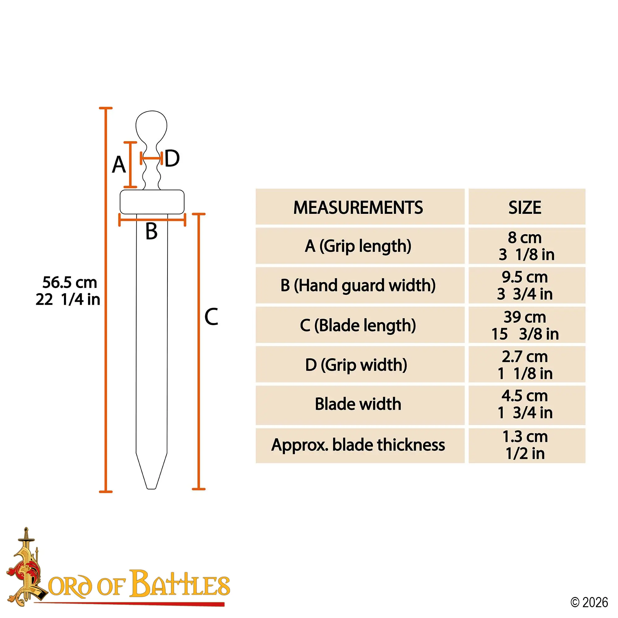 Designed as a safe alternative to metal blades, this Roman gladius training sword is ideal for training drills, Roman demonstrations, theatrical performances, and educational use. Its lightweight nature makes t easy to handle and use as well as for controlled strikes without fatigue or risk.