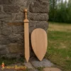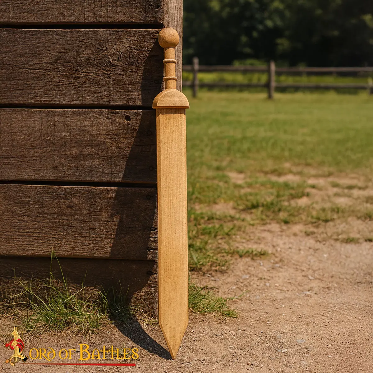 Designed for safe practice and historically inspired training sessions, this wooden gladius training sword is made after the classic rudis used by Roman legionaries. Before handling a real steel sword, recruits honed their combat skills with wooden swords to build strength, footwork and discipline. This replica brings that tradition back to life for performers and enthusiasts of ancient warfare.