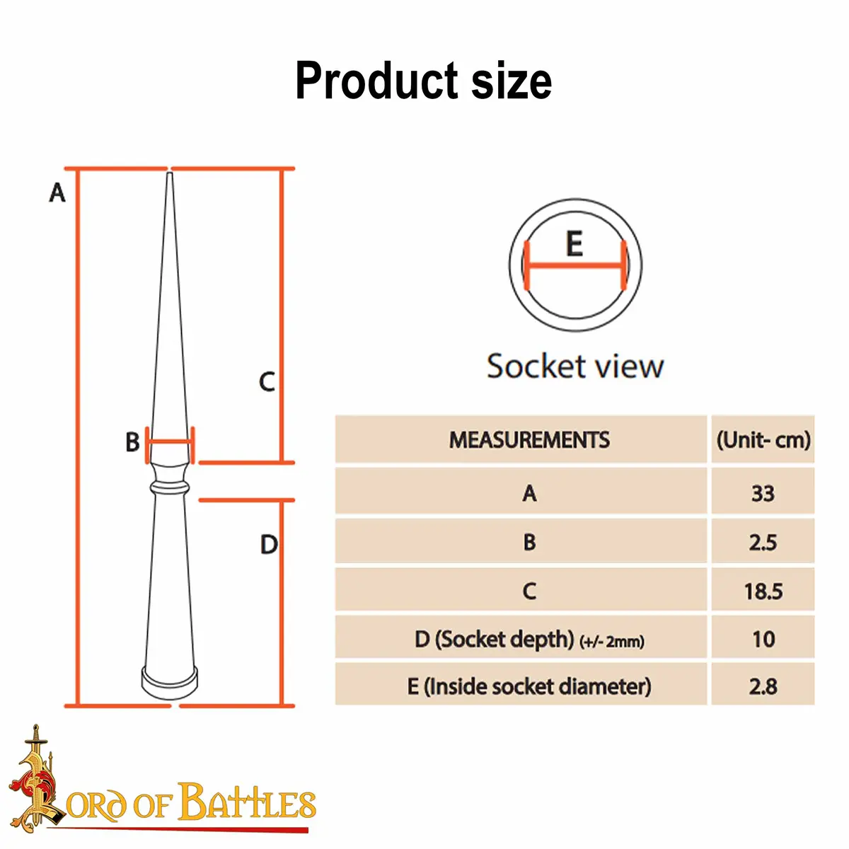 Historically, these spearheads were known as the roman pilum and played a vital role in Roman warfare. Used by Roman soldiers, they helped keep enemies at a distance and were effective in both offensive and defensive combat, cavalry and infantry formations. The also served ceremonial purposes, for authority, discipline and rank.