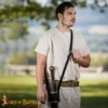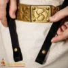 In ancient Rome, soldiers used hanging belts that were called baltei to carry their swords at an angle for easy access. This leather sword belt helped in hands free carrying as well as a balanced weight. The belt works as a Sword hanger belt, and helps in hanging your sword at your side. Solid brass buckles and studs give it strength and a historical appearance. The adjustable length makes it suitable for different body sizes and outfits.