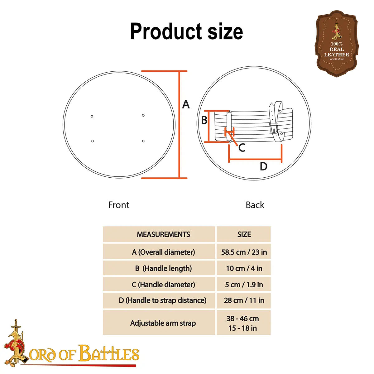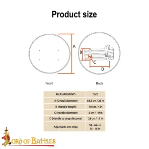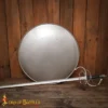 Crafted from 20-gauge mild steel, the shield gives a strong and manageable build suitable for use. Measuring 23 inches in diameter, it gives a balanced coverage without too much weight, making it practical for training, stage combat, or historical display. The smooth, polished steel face is left plain, for easy customization with paint, heraldry or decorative finishes according to the user’s choice.