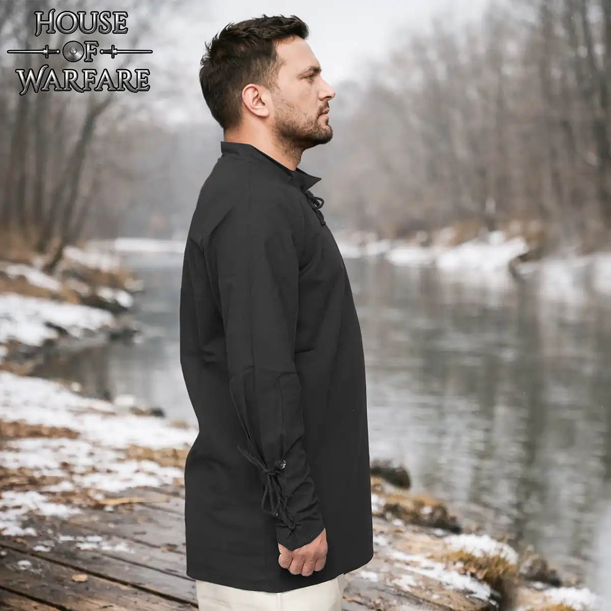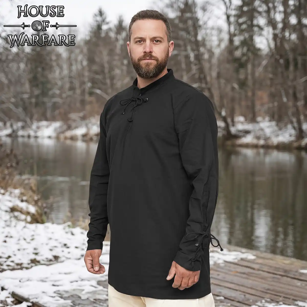 Design Features: This bard shirt has canvas drawstring closures at the sleeves. The cuffs can be tightened or loosened depending on the look, for either a relaxed drape or a gathered effect at the wrist.